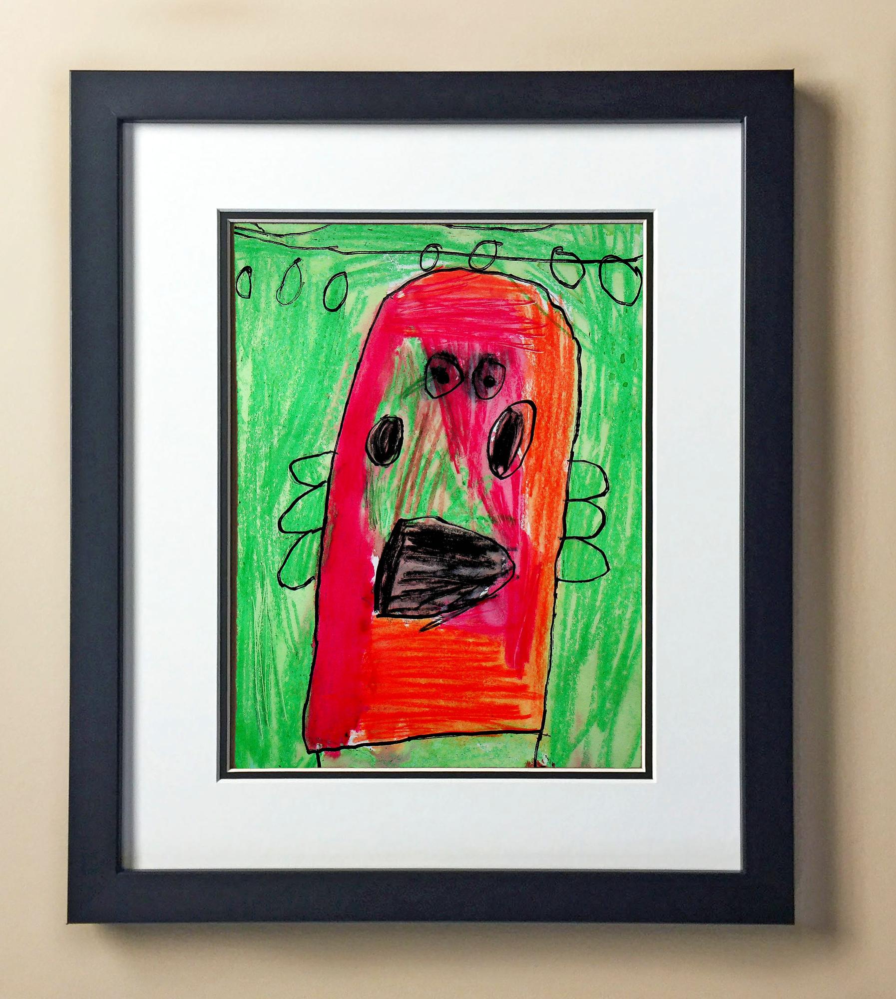 Included with the purchase is the Students Artwork, Frame, double matboard, shatter proof plexiglass, and a ready to hang backerboard with turnbuttons