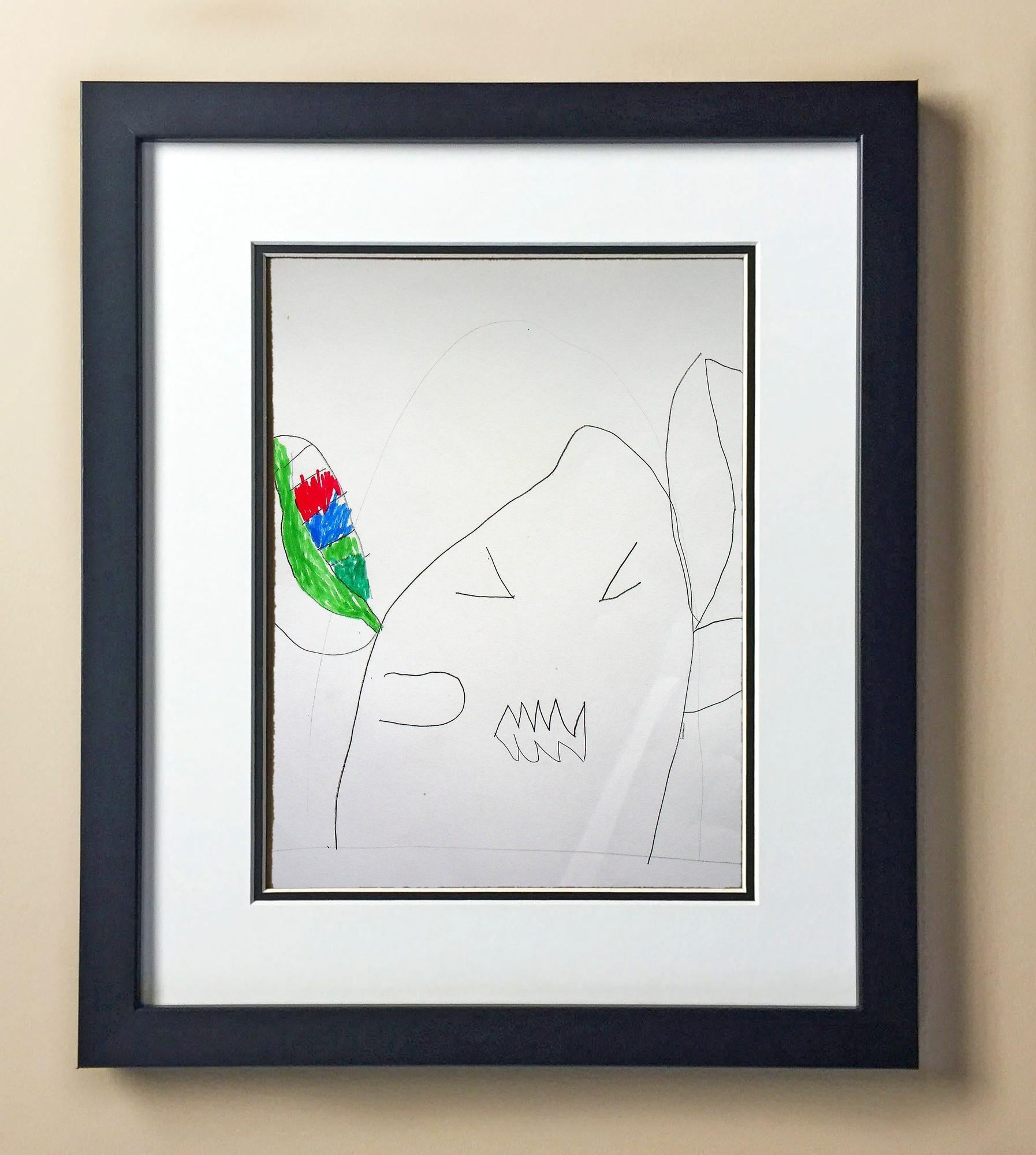 Included with the purchase is the Students Artwork, Frame, double matboard, shatter proof plexiglass, and a ready to hang backerboard with turnbuttons