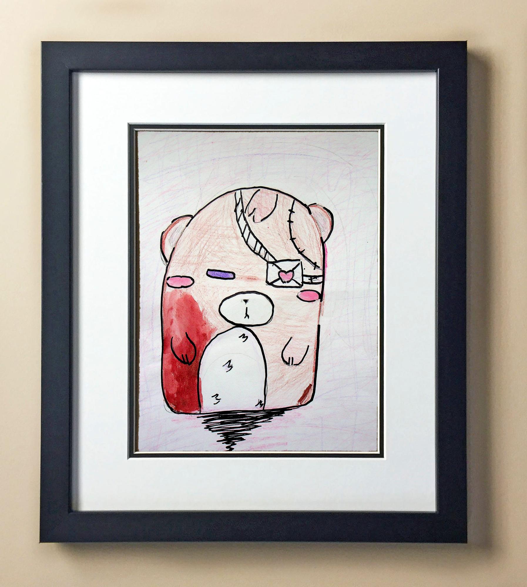 Included with the purchase is the Students Artwork, Frame, double matboard, shatter proof plexiglass, and a ready to hang backerboard with turnbuttons