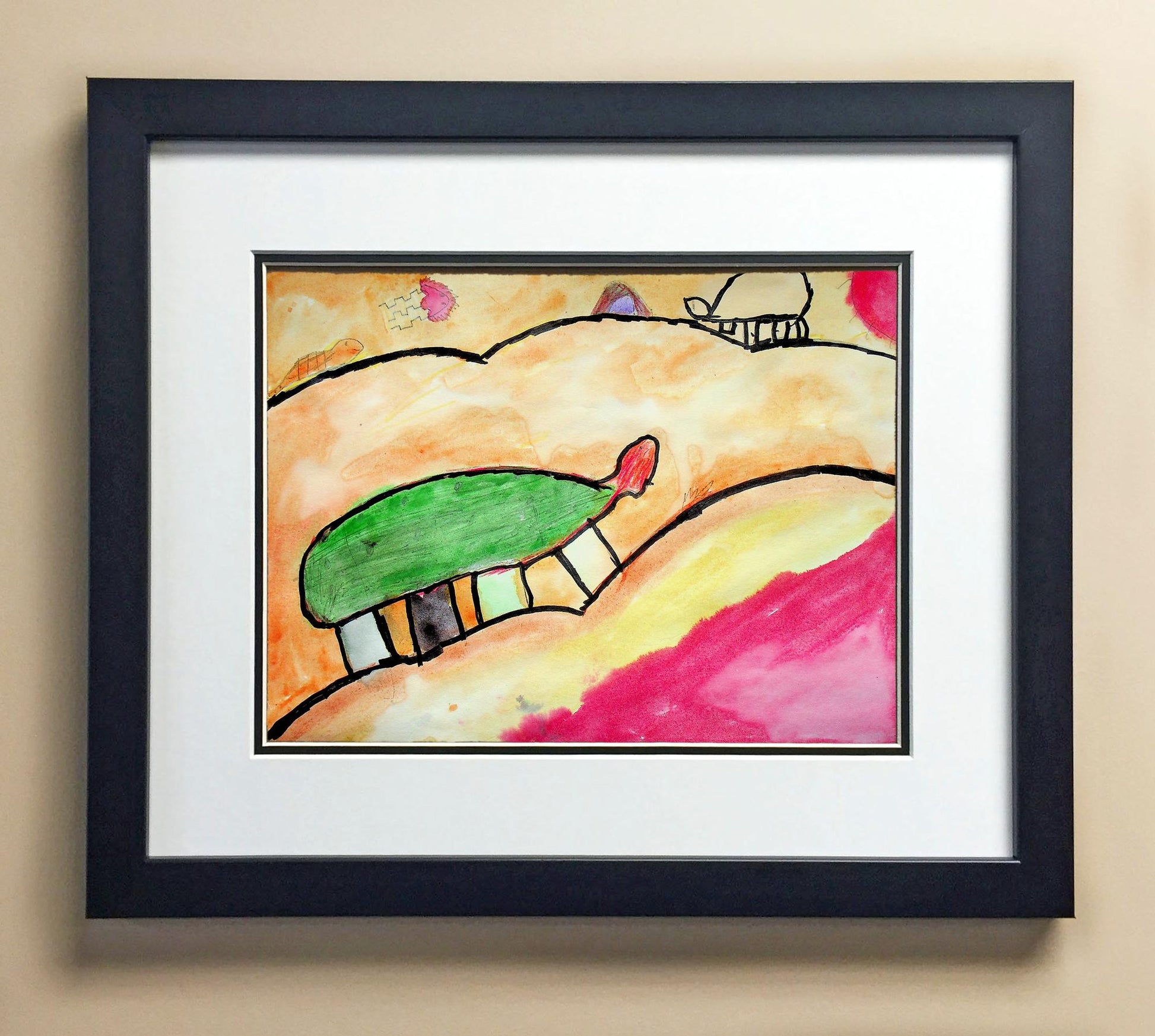 Included with the purchase is the Students Artwork, Frame, double matboard, shatter proof plexiglass, and a ready to hang backerboard with turnbuttons