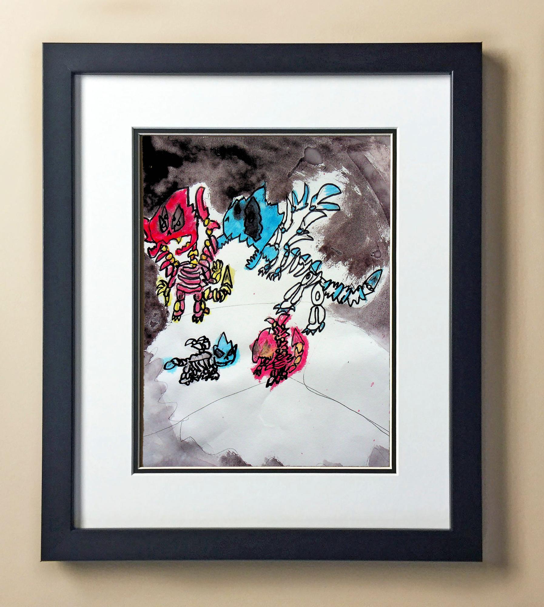 Included with the purchase is the Students Artwork, Frame, double matboard, shatter proof plexiglass, and a ready to hang backerboard with turnbuttons