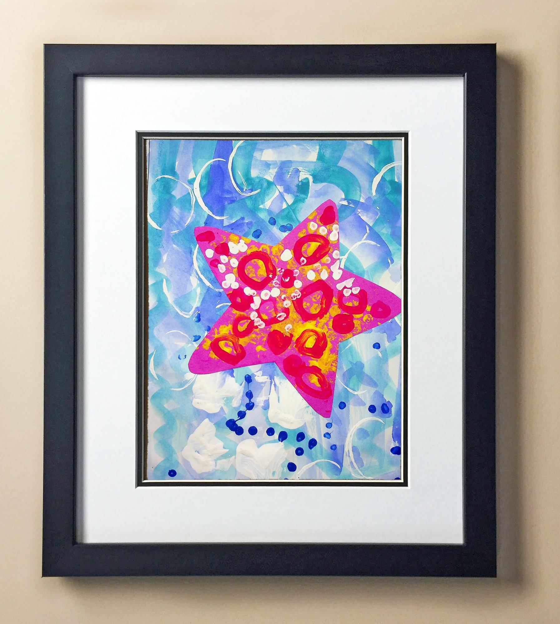 Included with the purchase is the Students Artwork, Frame, double matboard, shatter proof plexiglass, and a ready to hang backerboard with turnbuttons