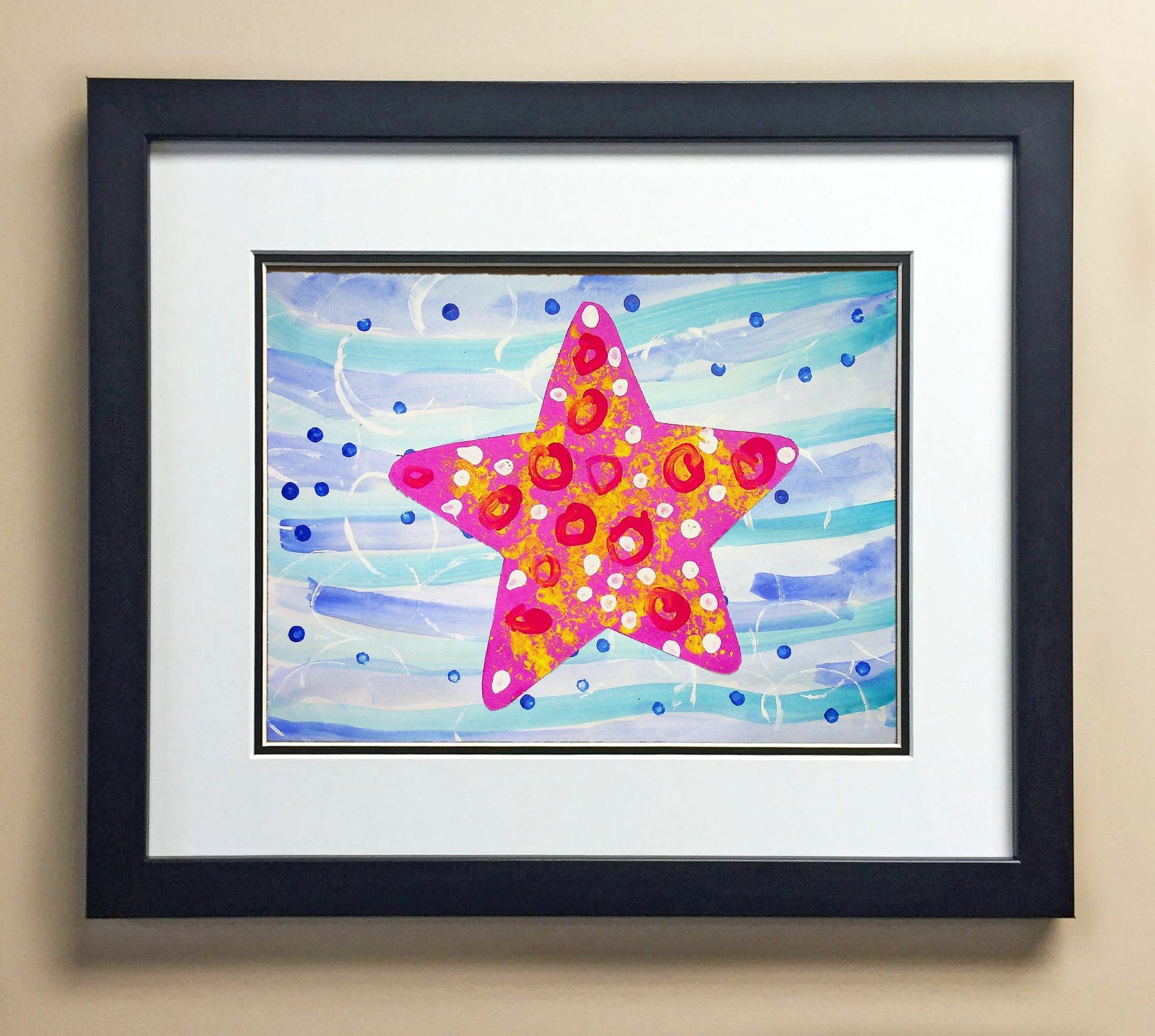 Included with the purchase is the Students Artwork, Frame, double matboard, shatter proof plexiglass, and a ready to hang backerboard with turnbuttons