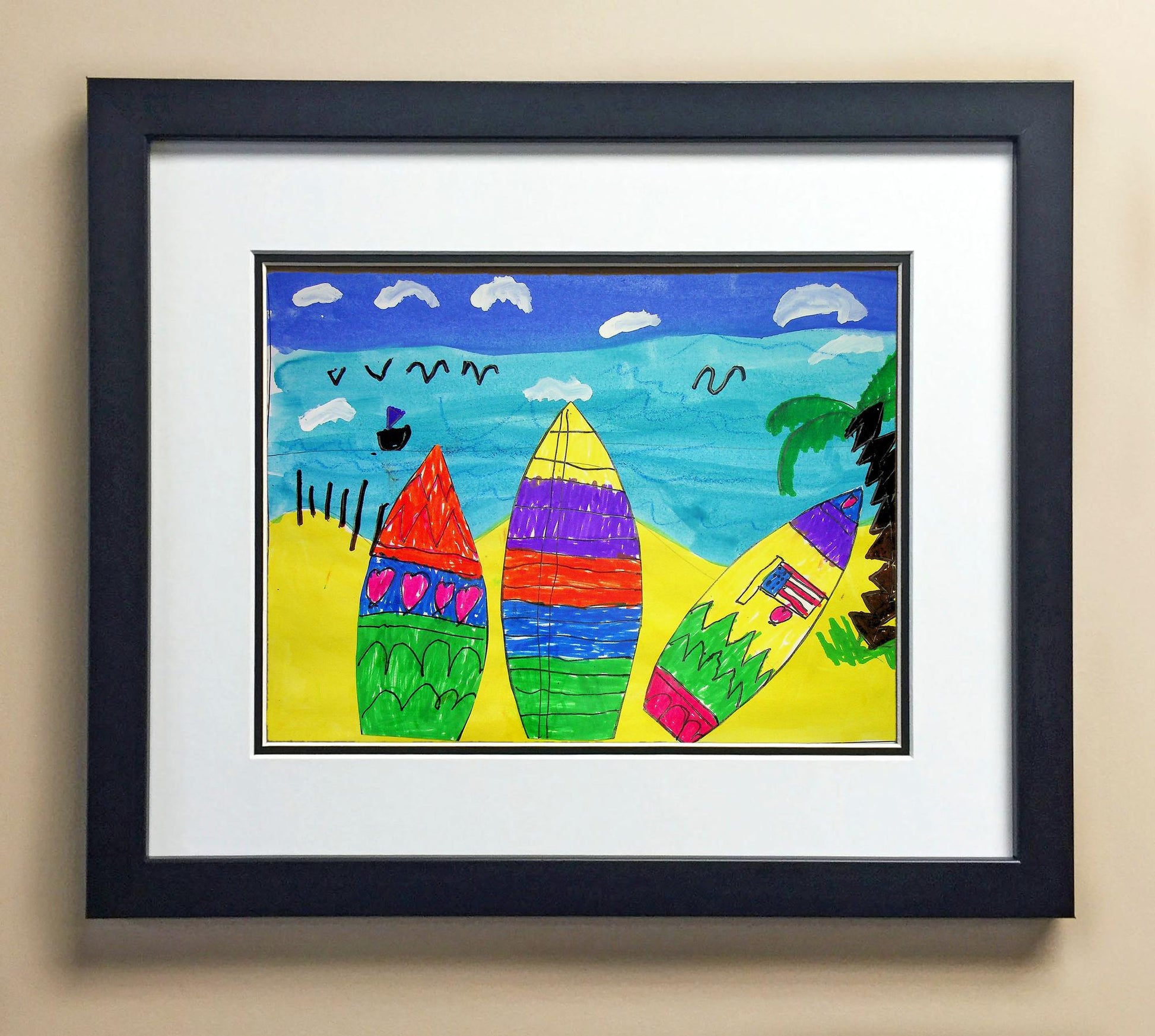 Included with the purchase is the Students Artwork, Frame, double matboard, shatter proof plexiglass, and a ready to hang backerboard with turnbuttons