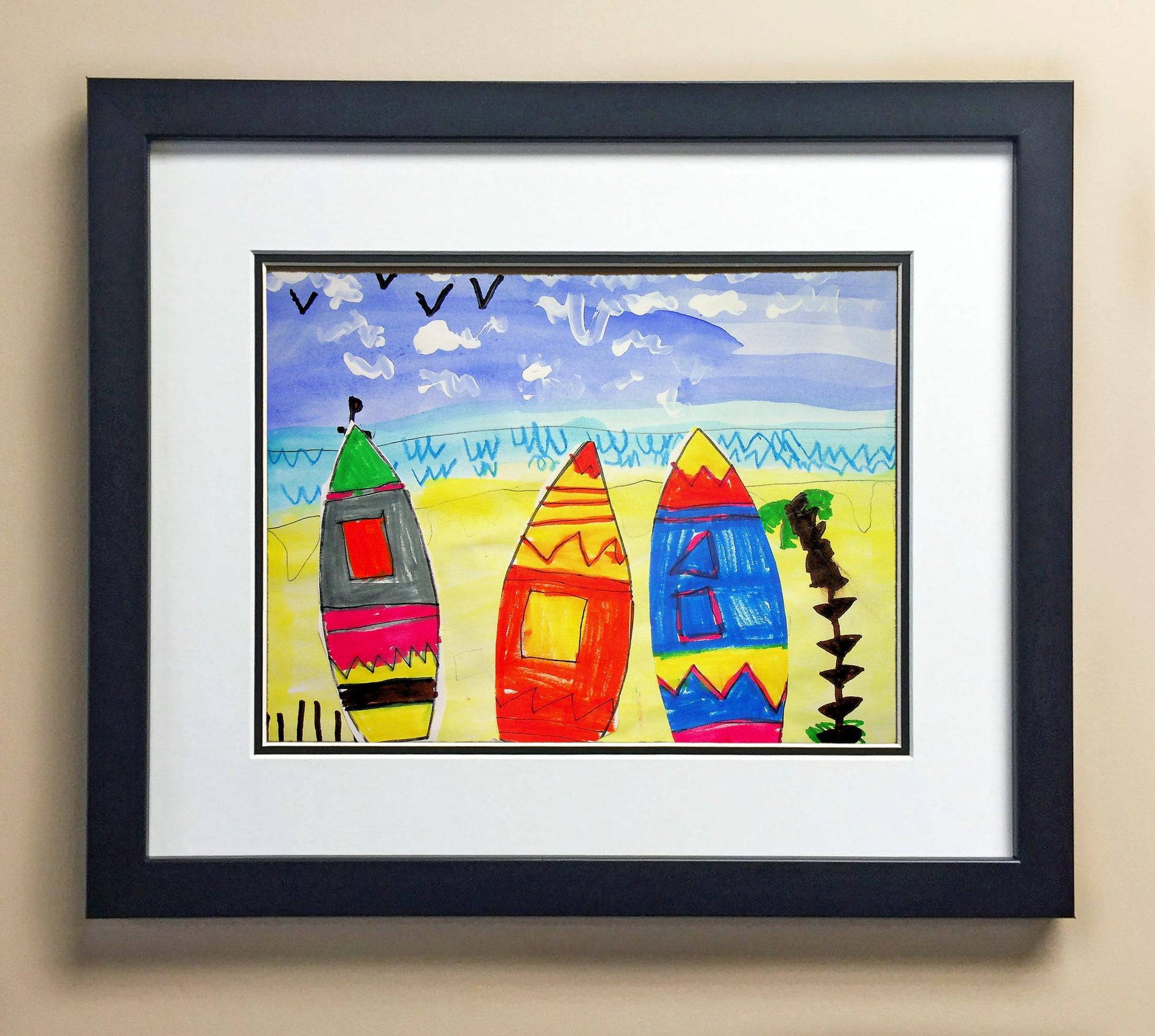 Included with the purchase is the Students Artwork, Frame, double matboard, shatter proof plexiglass, and a ready to hang backerboard with turnbuttons