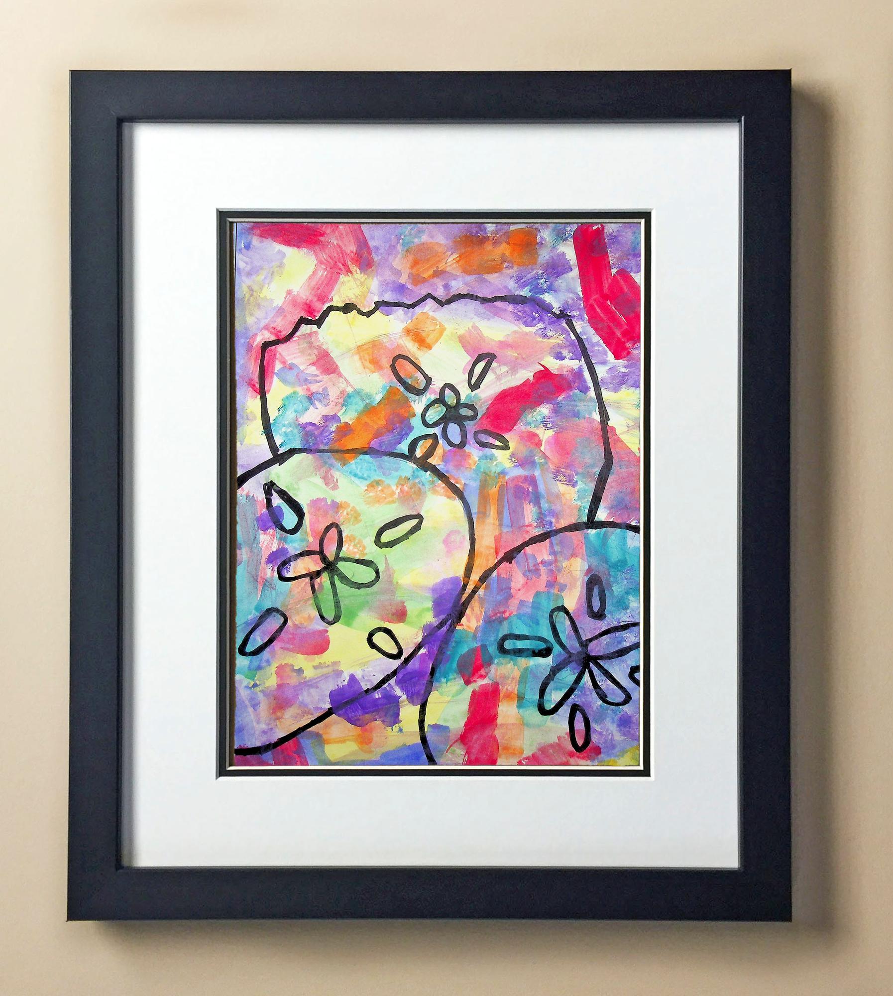 Included with the purchase is the Students Artwork, Frame, double matboard, shatter proof plexiglass, and a ready to hang backerboard with turnbuttons