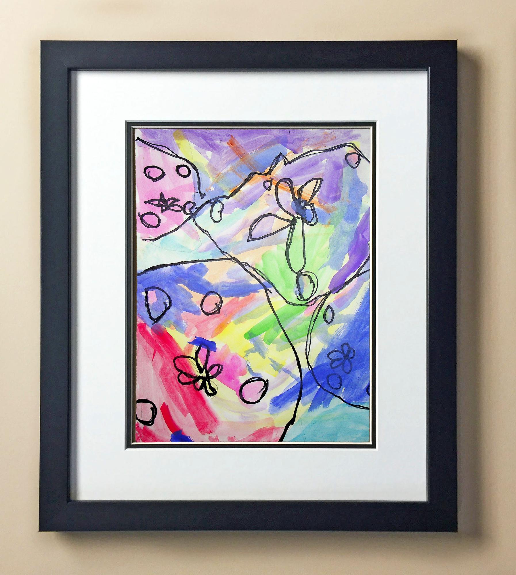 Included with the purchase is the Students Artwork, Frame, double matboard, shatter proof plexiglass, and a ready to hang backerboard with turnbuttons