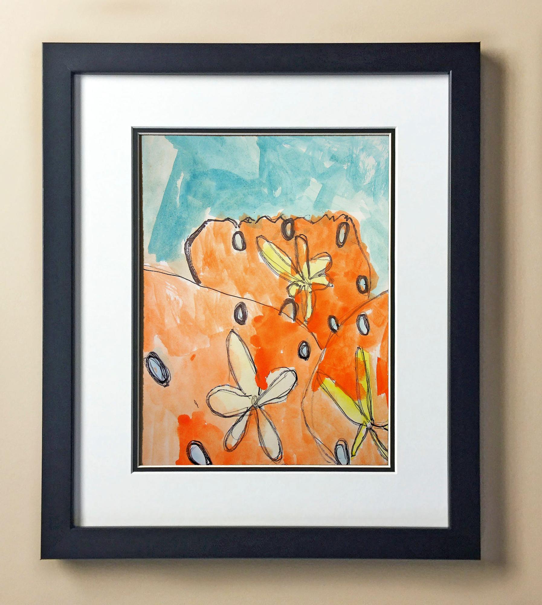 Included with the purchase is the Students Artwork, Frame, double matboard, shatter proof plexiglass, and a ready to hang backerboard with turnbuttons