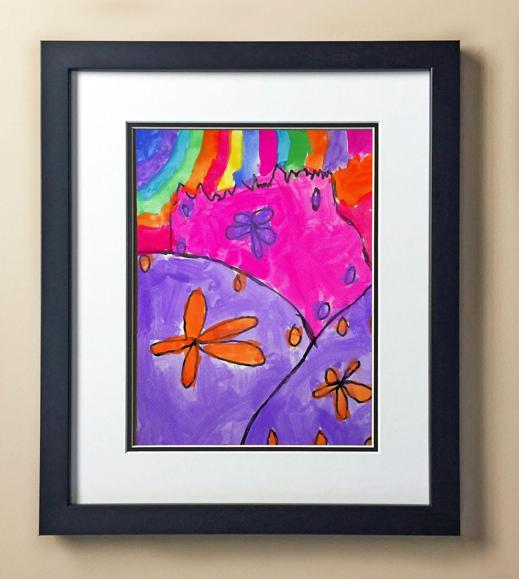 Included with the purchase is the Students Artwork, Frame, double matboard, shatter proof plexiglass, and a ready to hang backerboard with turnbuttons