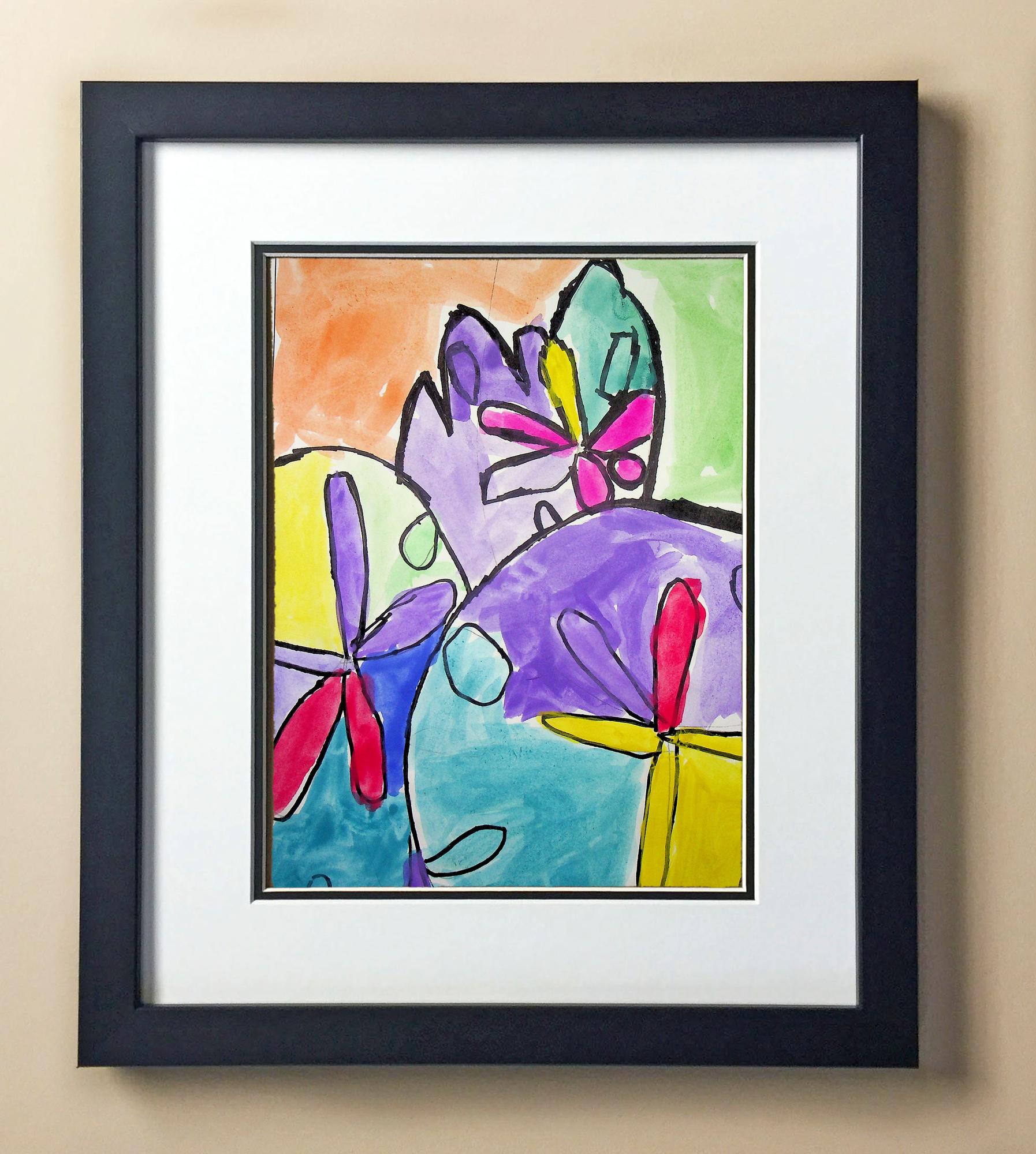 Included with the purchase is the Students Artwork, Frame, double matboard, shatter proof plexiglass, and a ready to hang backerboard with turnbuttons