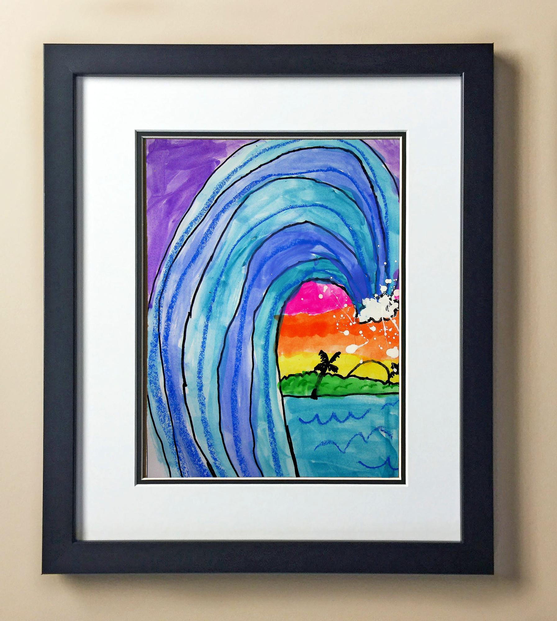 Included with the purchase is the Students Artwork, Frame, double matboard, shatter proof plexiglass, and a ready to hang backerboard with turnbuttons