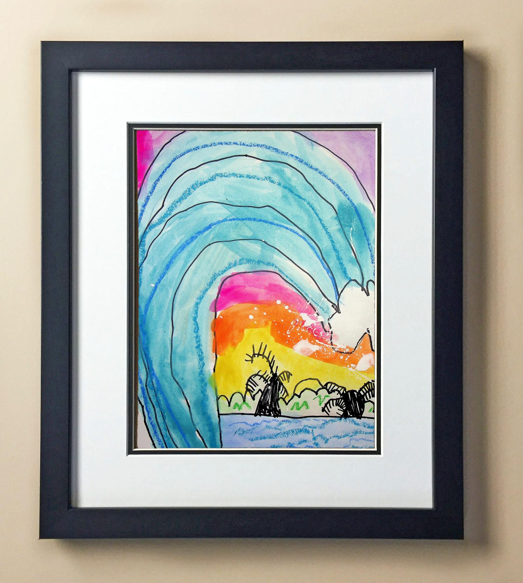 Included with the purchase is the Students Artwork, Frame, double matboard, shatter proof plexiglass, and a ready to hang backerboard with turnbuttons
