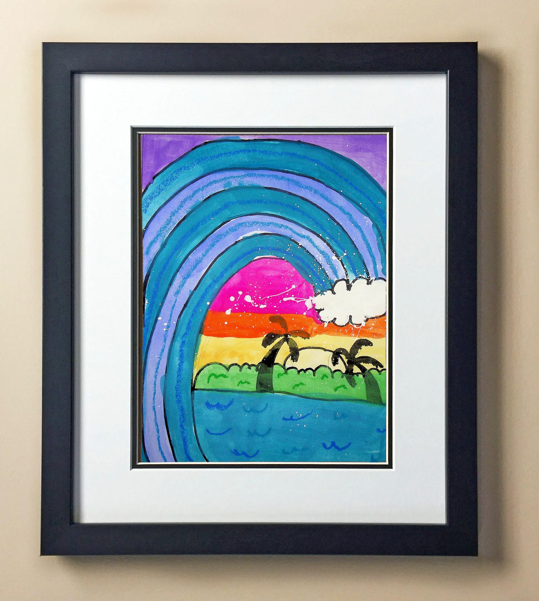 Included with the purchase is the Students Artwork, Frame, double matboard, shatter proof plexiglass, and a ready to hang backerboard with turnbuttons