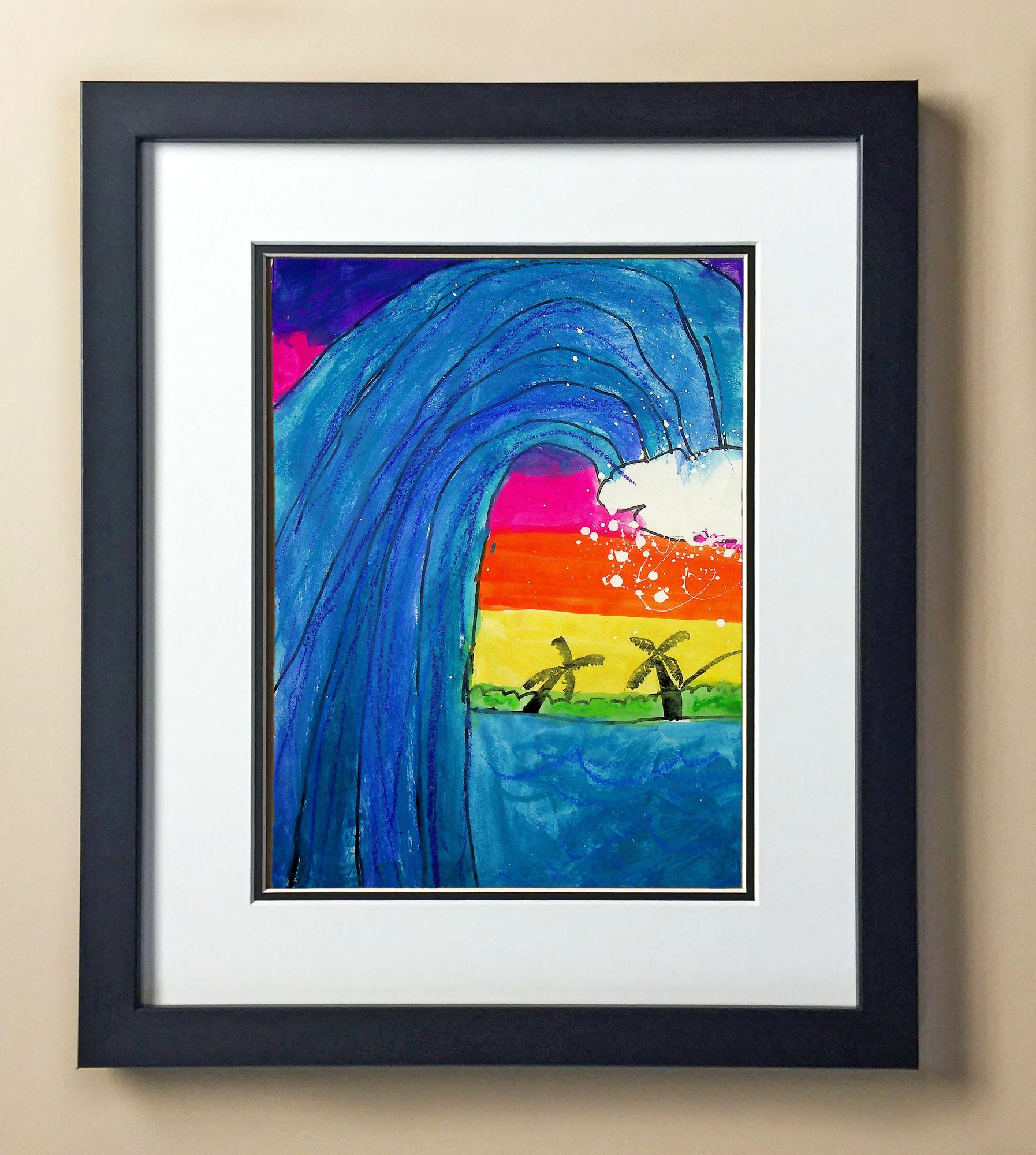 Included with the purchase is the Students Artwork, Frame, double matboard, shatter proof plexiglass, and a ready to hang backerboard with turnbuttons