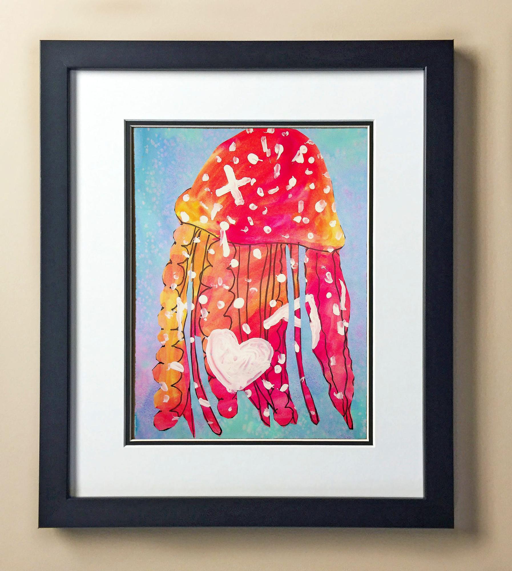 Included with the purchase is the Students Artwork, Frame, double matboard, shatter proof plexiglass, and a ready to hang backerboard with turnbuttons
