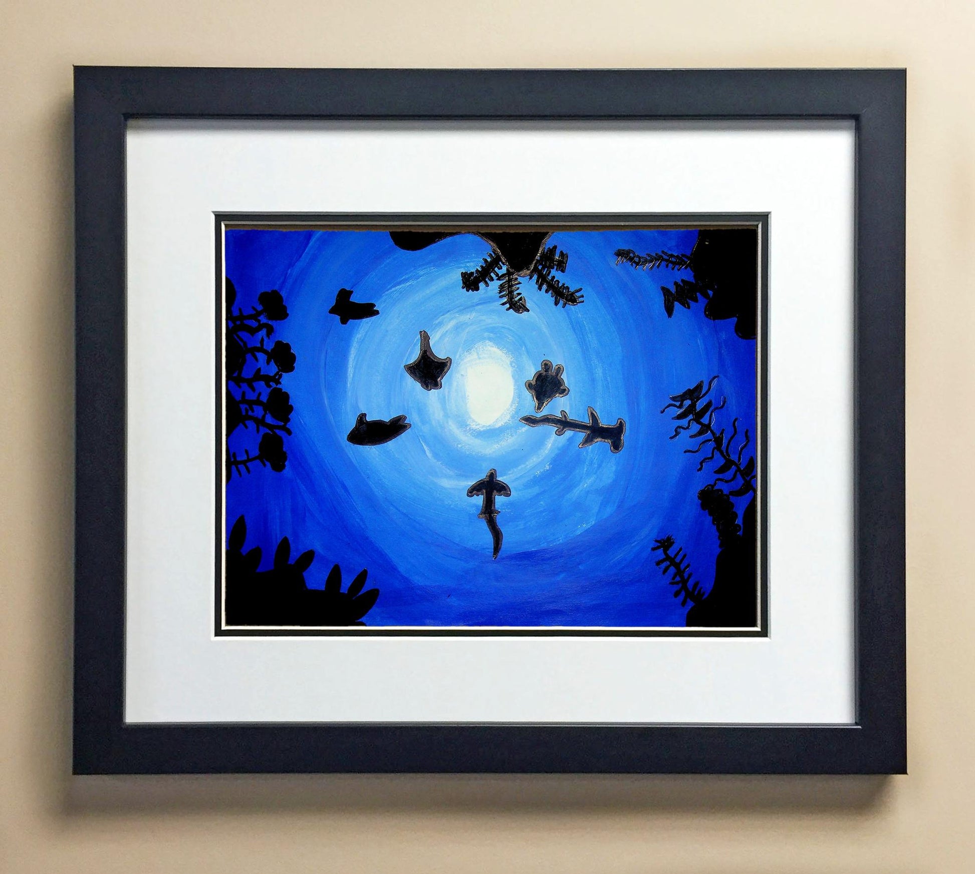 Included with the purchase is the Students Artwork, Frame, double matboard, shatter proof plexiglass, and a ready to hang backerboard with turnbuttons