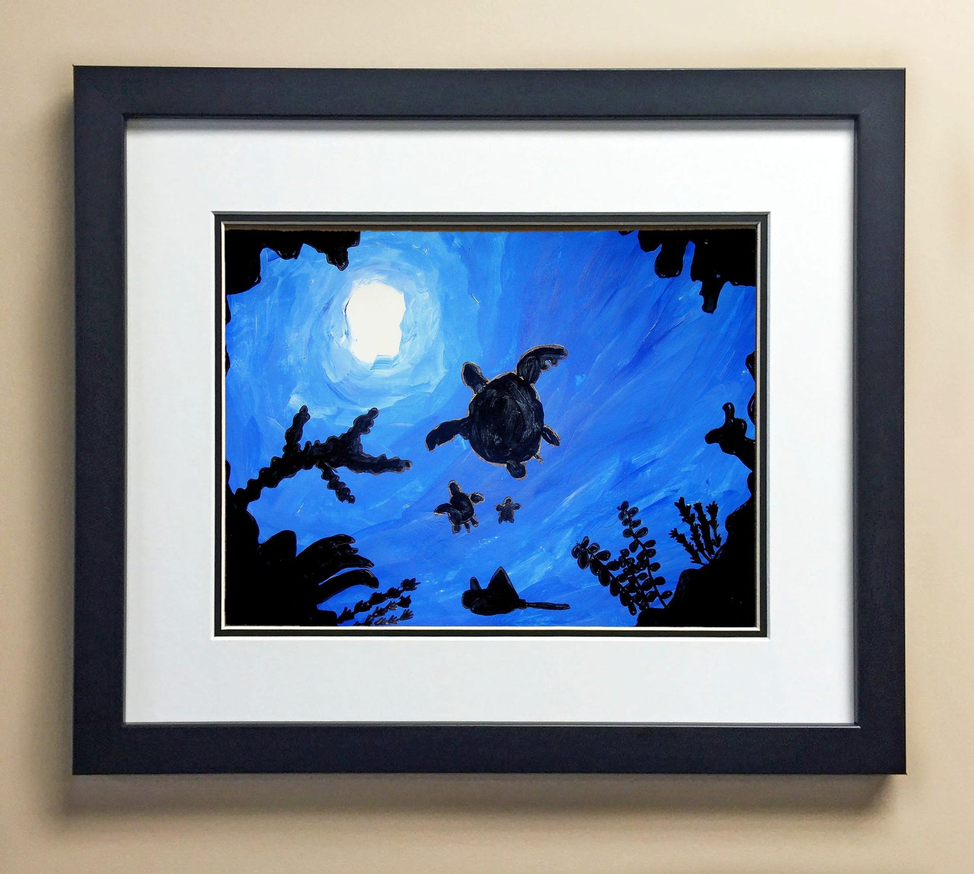 Included with the purchase is the Students Artwork, Frame, double matboard, shatter proof plexiglass, and a ready to hang backerboard with turnbuttons