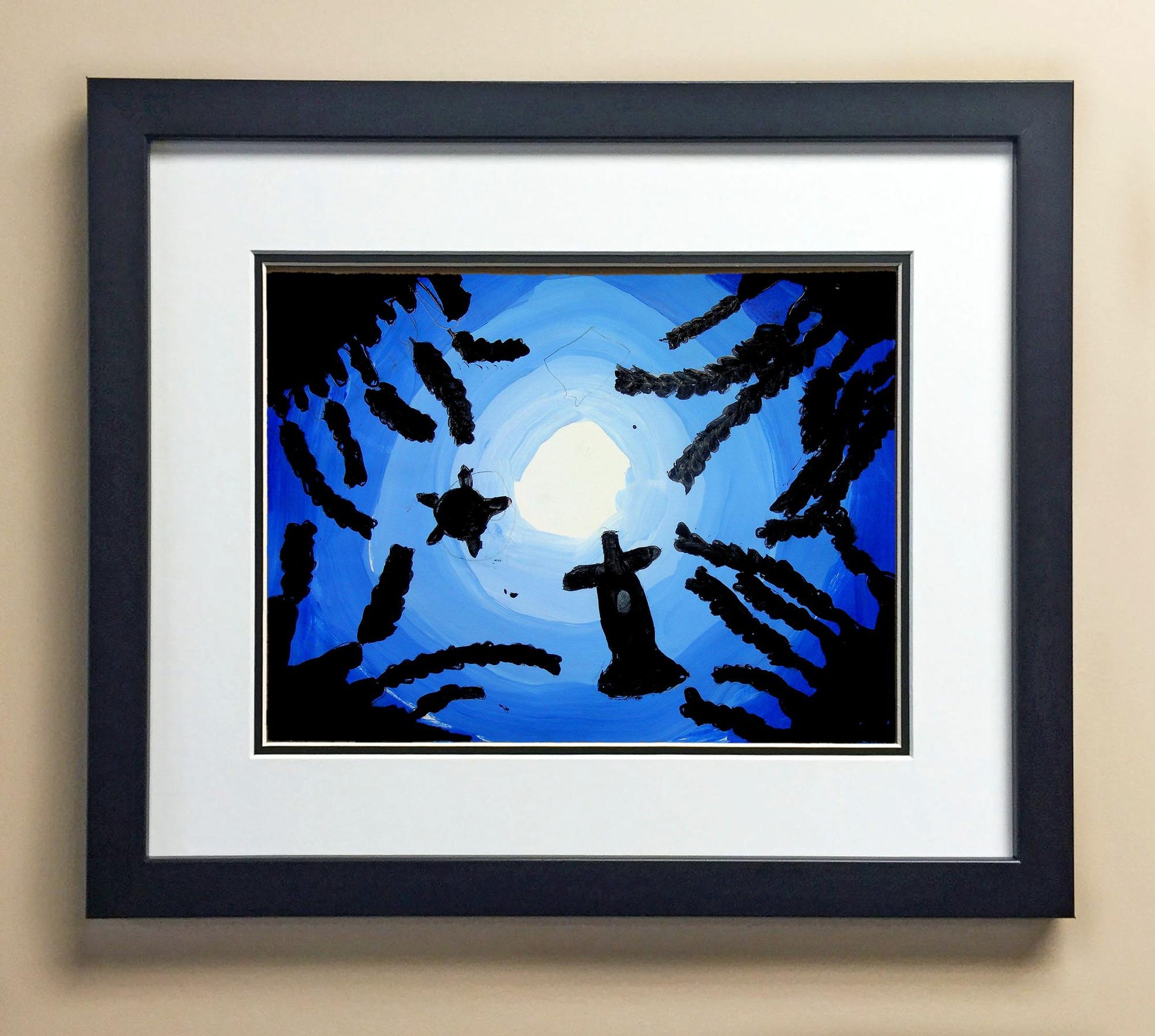 Included with the purchase is the Students Artwork, Frame, double matboard, shatter proof plexiglass, and a ready to hang backerboard with turnbuttons