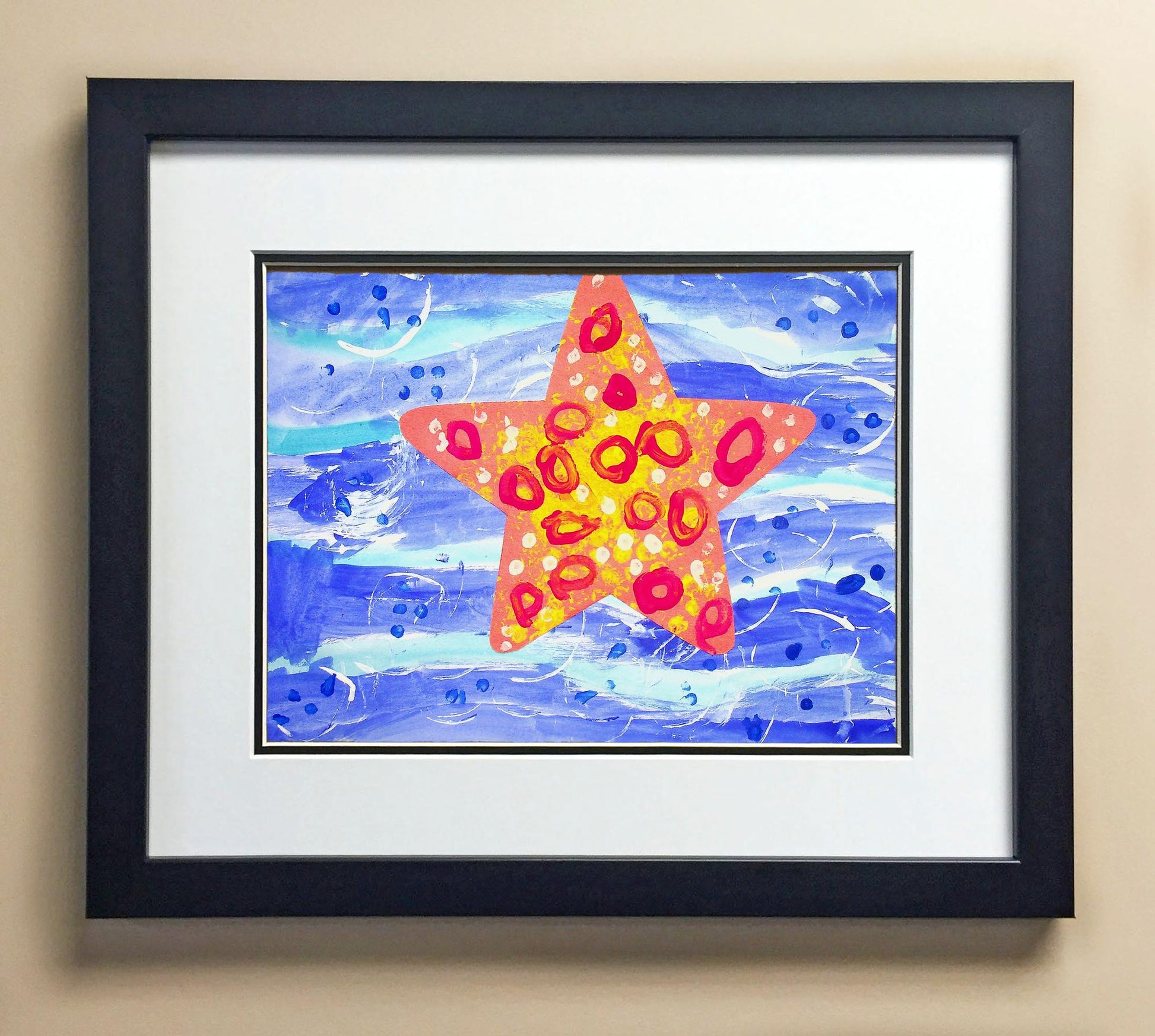 Included with the purchase is the Students Artwork, Frame, double matboard, shatter proof plexiglass, and a ready to hang backerboard with turnbuttons
