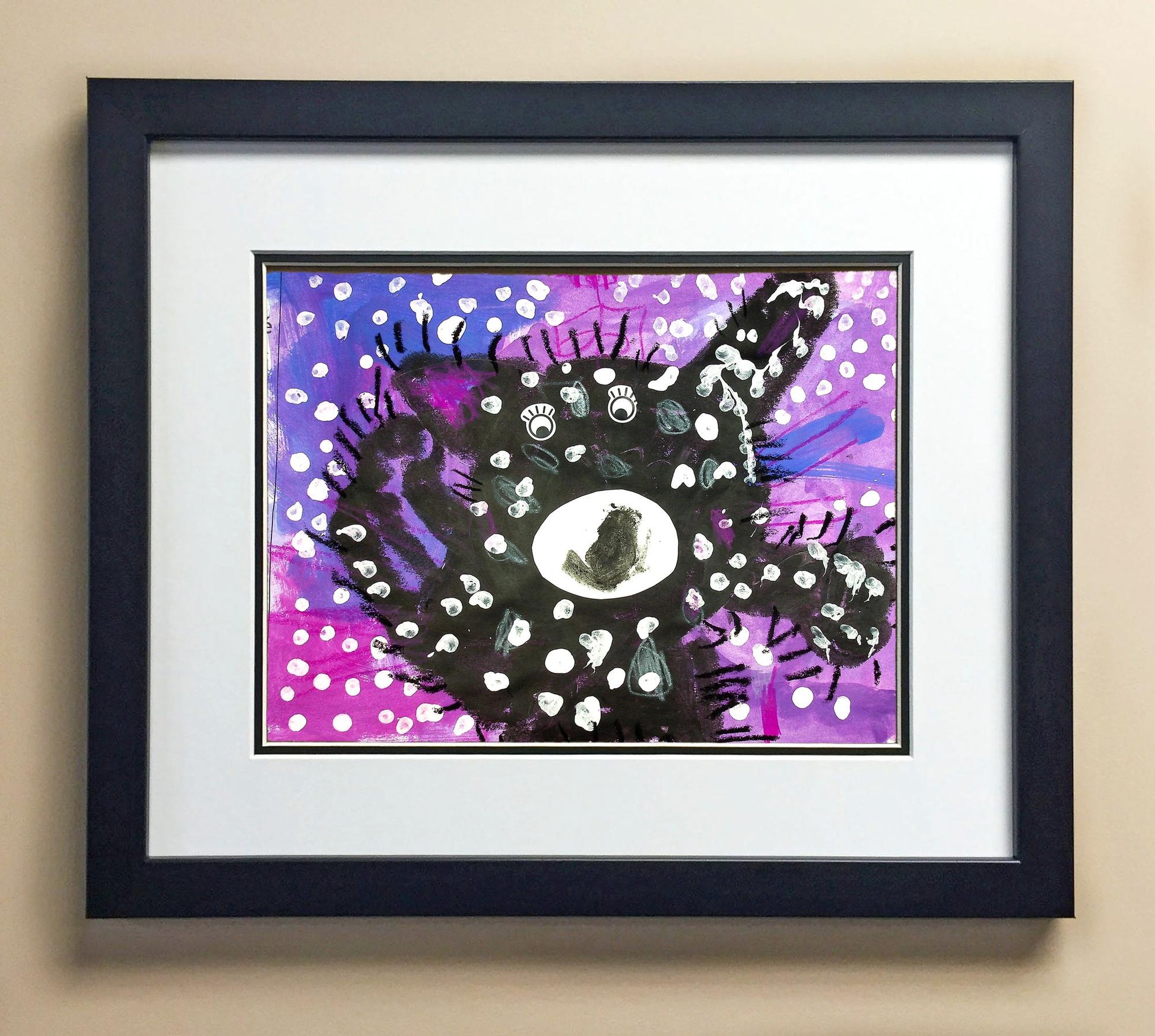 Included with the purchase is the Students Artwork, Frame, double matboard, shatter proof plexiglass, and a ready to hang backerboard with turnbuttons