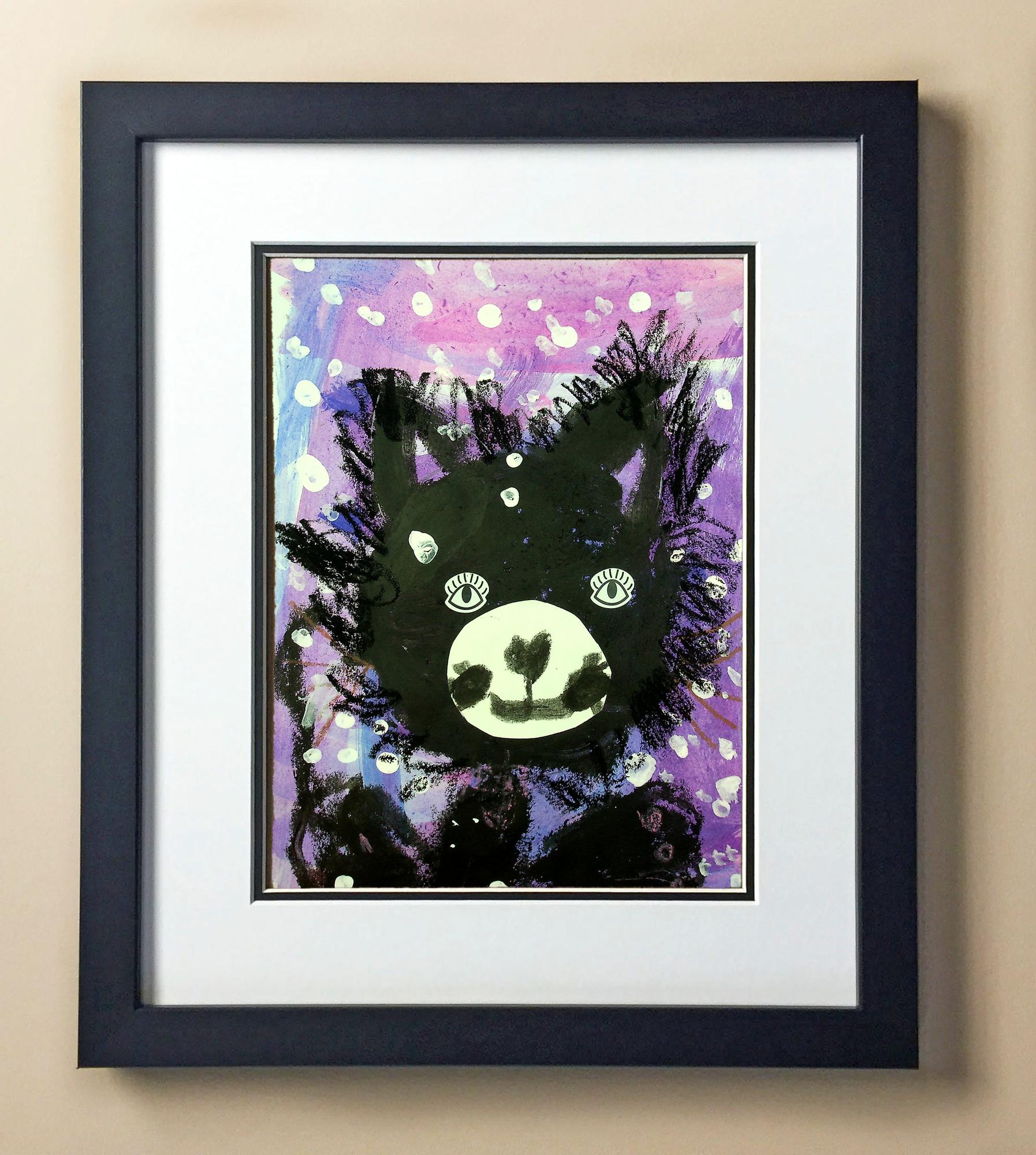 Included with the purchase is the Students Artwork, Frame, double matboard, shatter proof plexiglass, and a ready to hang backerboard with turnbuttons