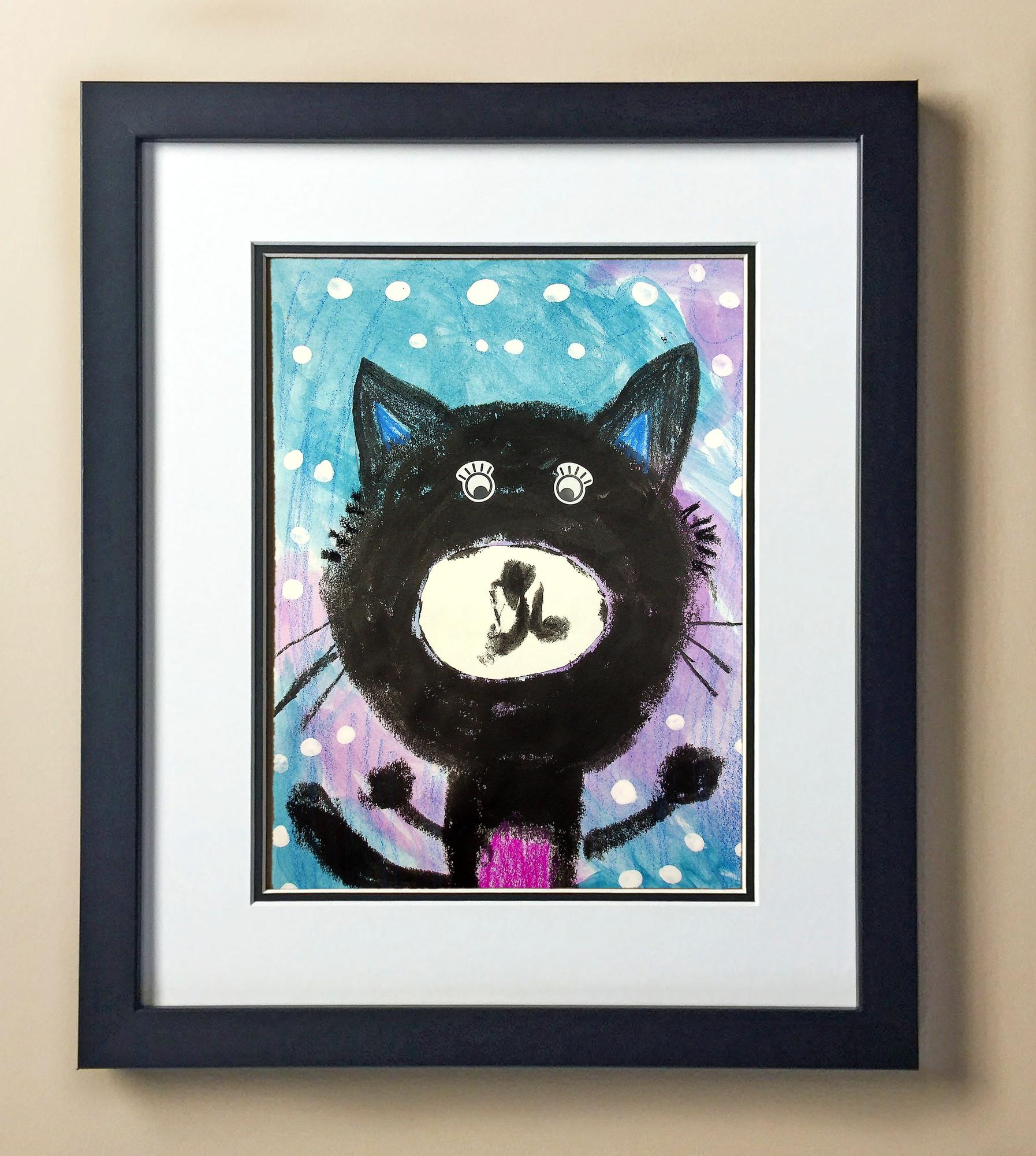 Included with the purchase is the Students Artwork, Frame, double matboard, shatter proof plexiglass, and a ready to hang backerboard with turnbuttons