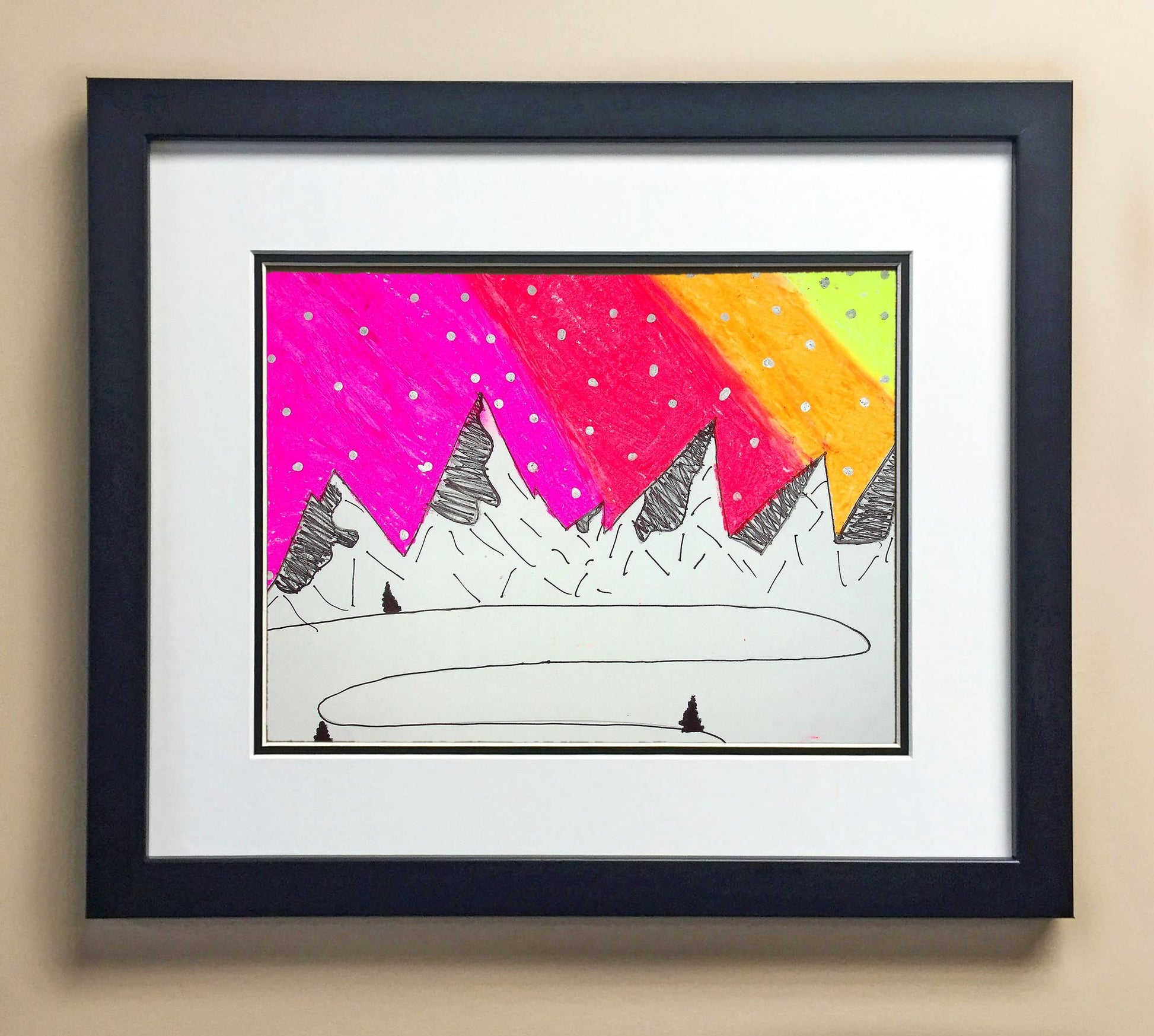 Included with the purchase is the Students Artwork, Frame, double matboard, shatter proof plexiglass, and a ready to hang backerboard with turnbuttons
