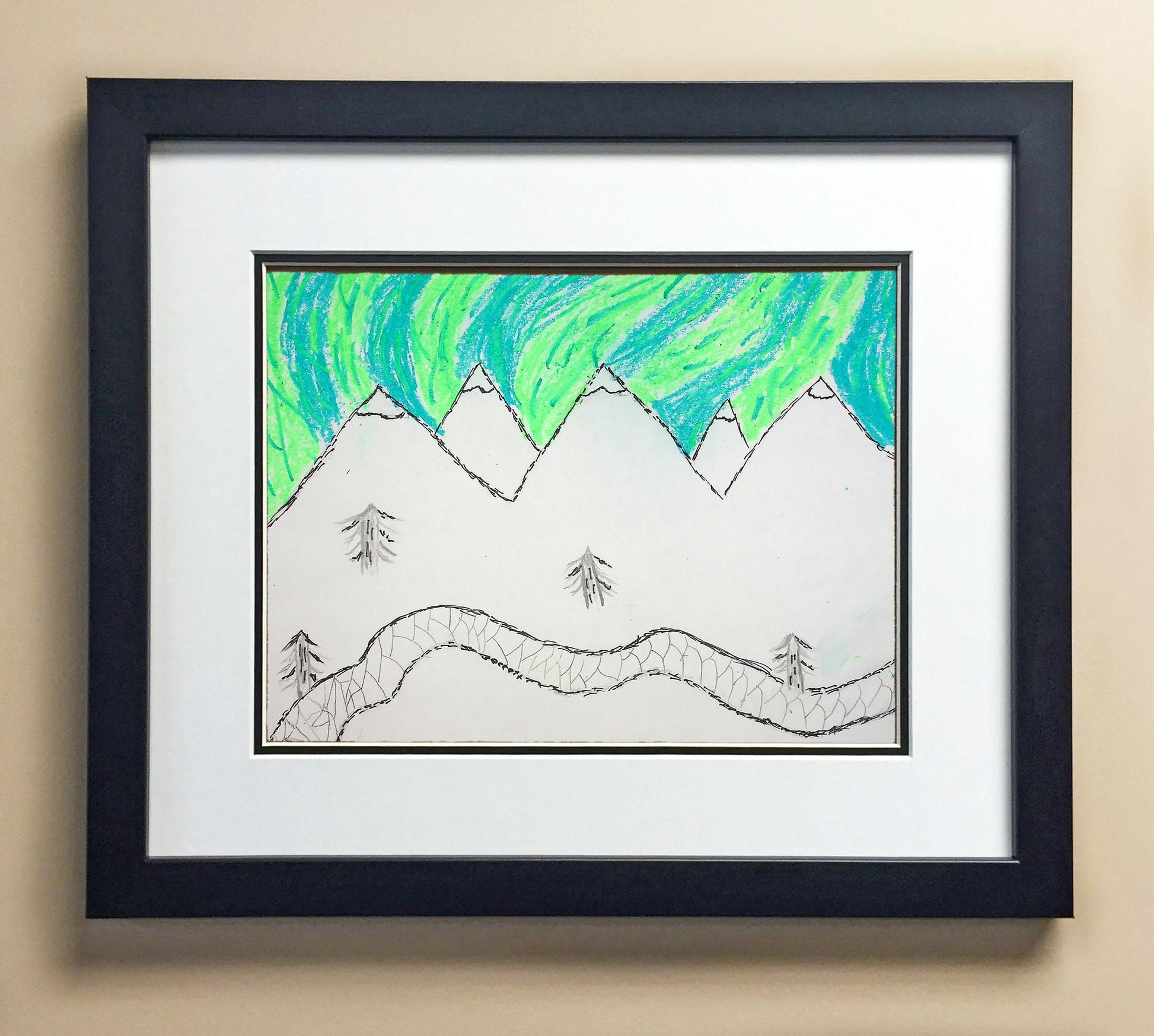 Included with the purchase is the Students Artwork, Frame, double matboard, shatter proof plexiglass, and a ready to hang backerboard with turnbuttons