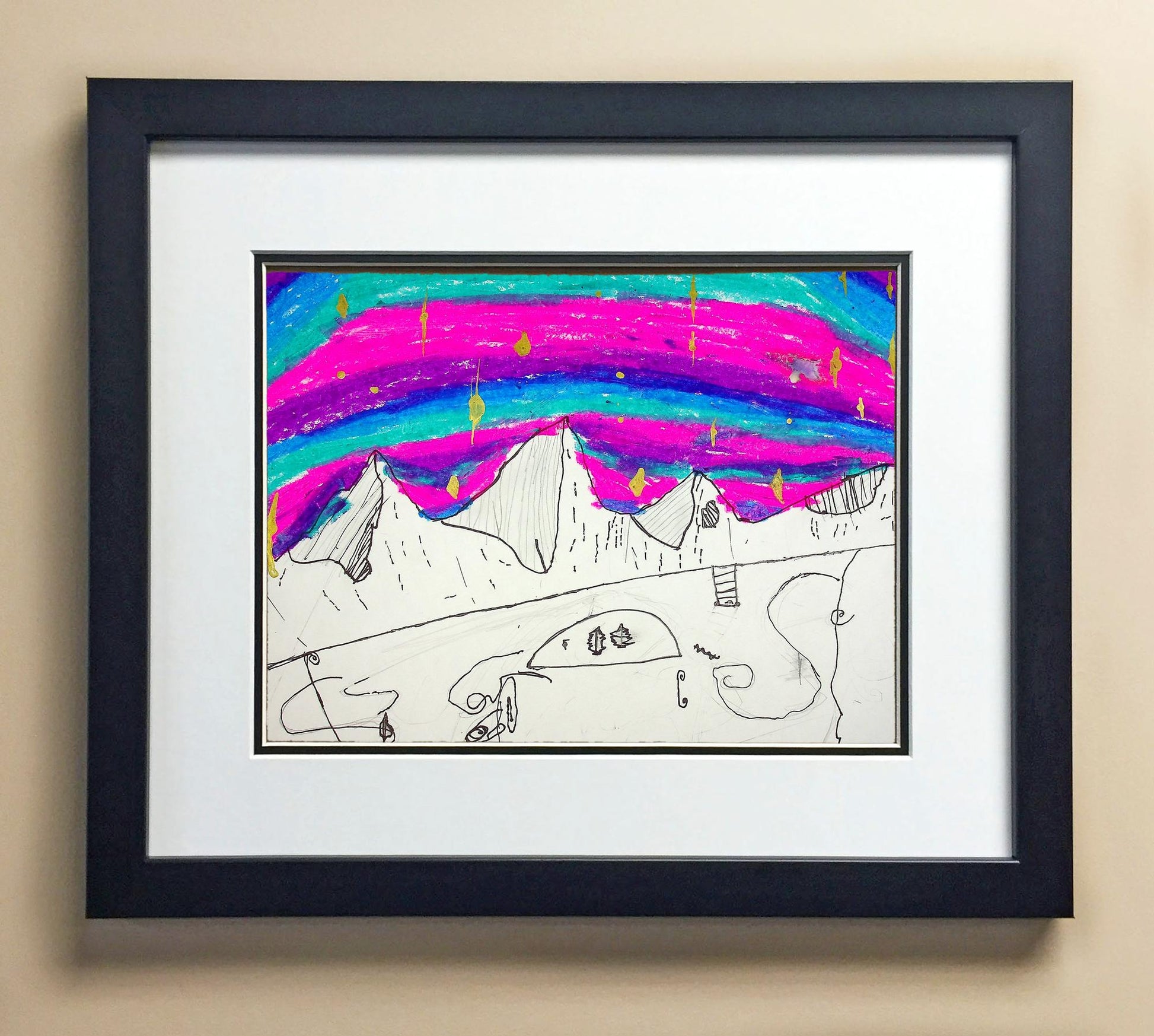 Included with the purchase is the Students Artwork, Frame, double matboard, shatter proof plexiglass, and a ready to hang backerboard with turnbuttons