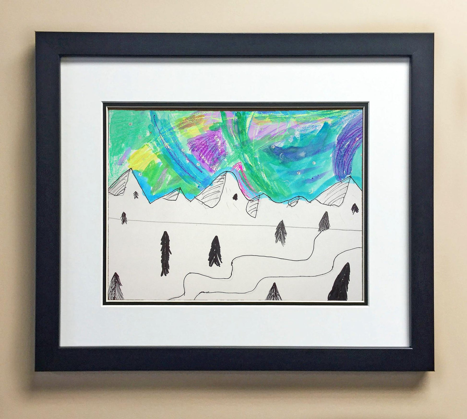 Included with the purchase is the Students Artwork, Frame, double matboard, shatter proof plexiglass, and a ready to hang backerboard with turnbuttons