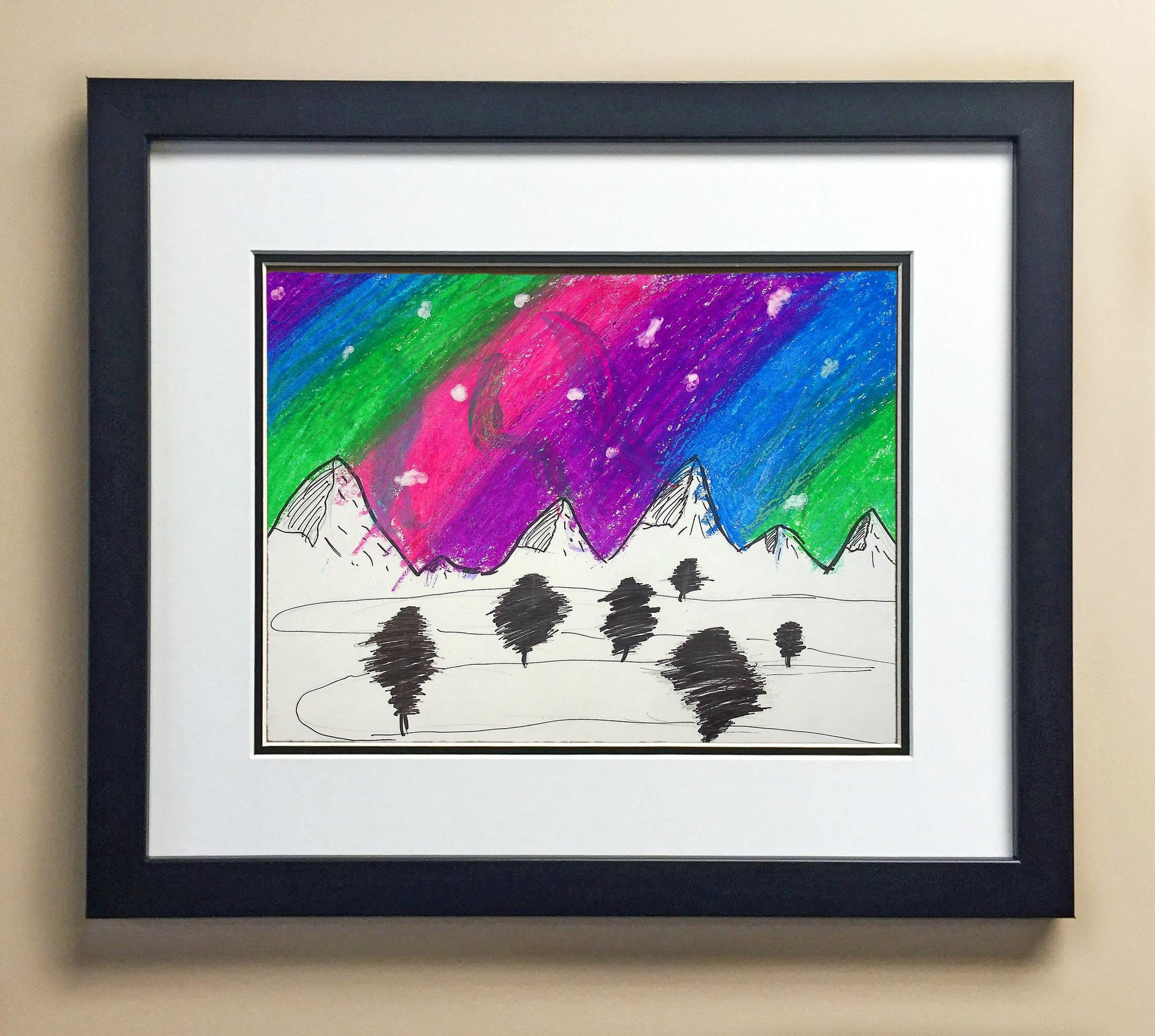 Included with the purchase is the Students Artwork, Frame, double matboard, shatter proof plexiglass, and a ready to hang backerboard with turnbuttons