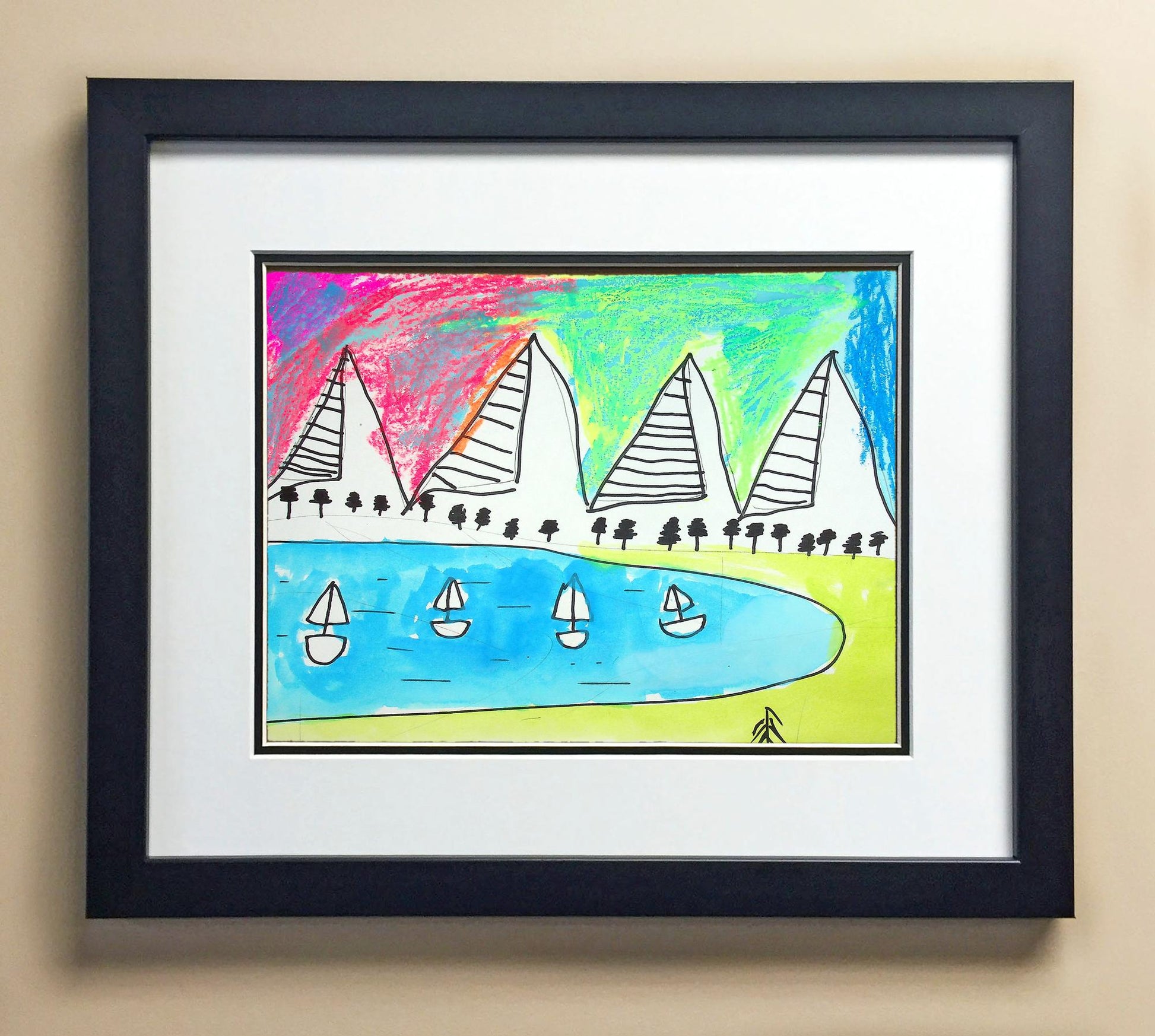 Included with the purchase is the Students Artwork, Frame, double matboard, shatter proof plexiglass, and a ready to hang backerboard with turnbuttons
