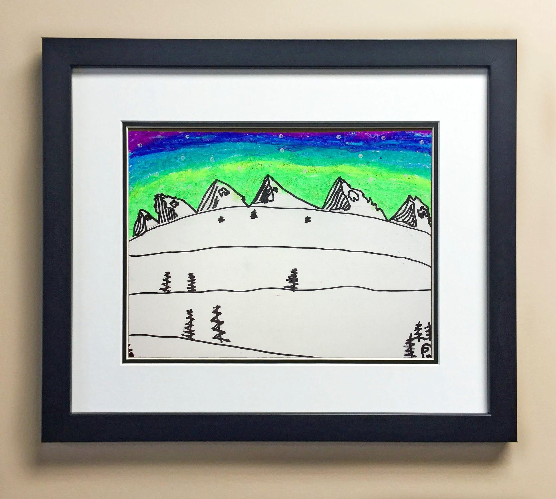 Included with the purchase is the Students Artwork, Frame, double matboard, shatter proof plexiglass, and a ready to hang backerboard with turnbuttons