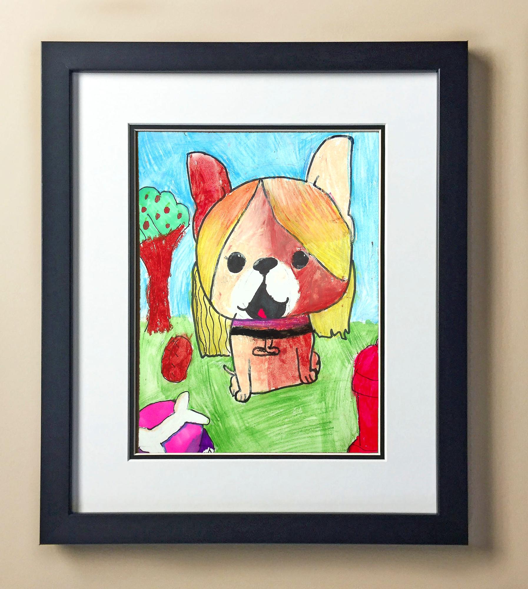 Included with the purchase is the Students Artwork, Frame, double matboard, shatter proof plexiglass, and a ready to hang backerboard with turnbuttons