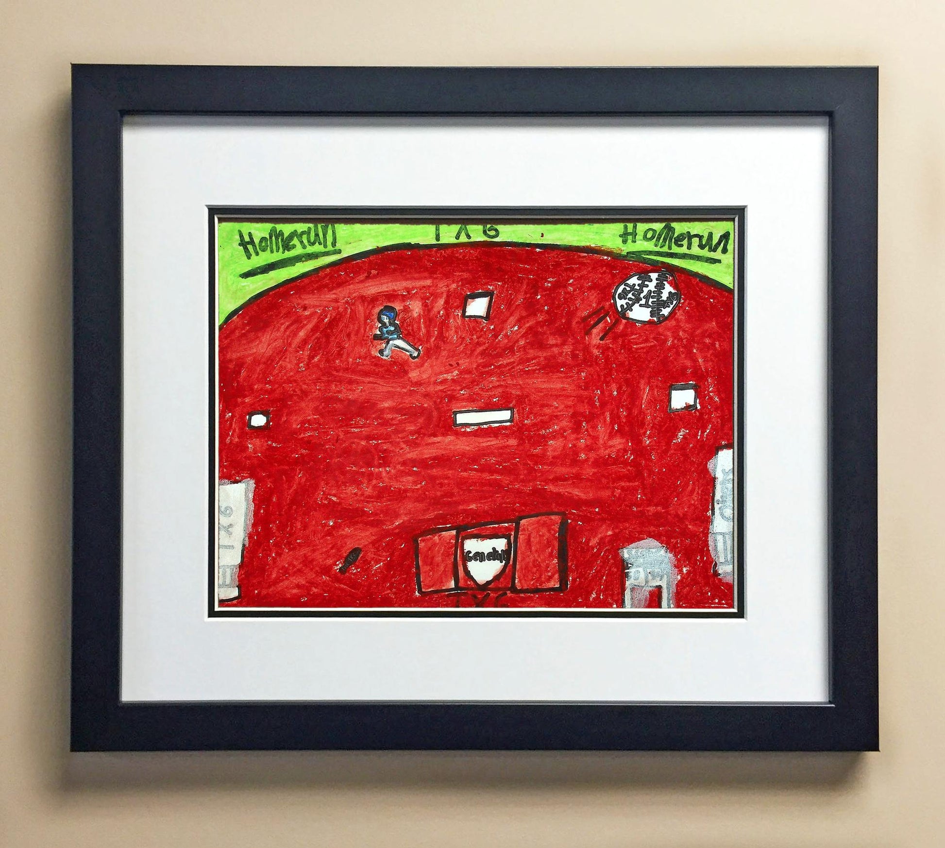 Included with the purchase is the Students Artwork, Frame, double matboard, shatter proof plexiglass, and a ready to hang backerboard with turnbuttons