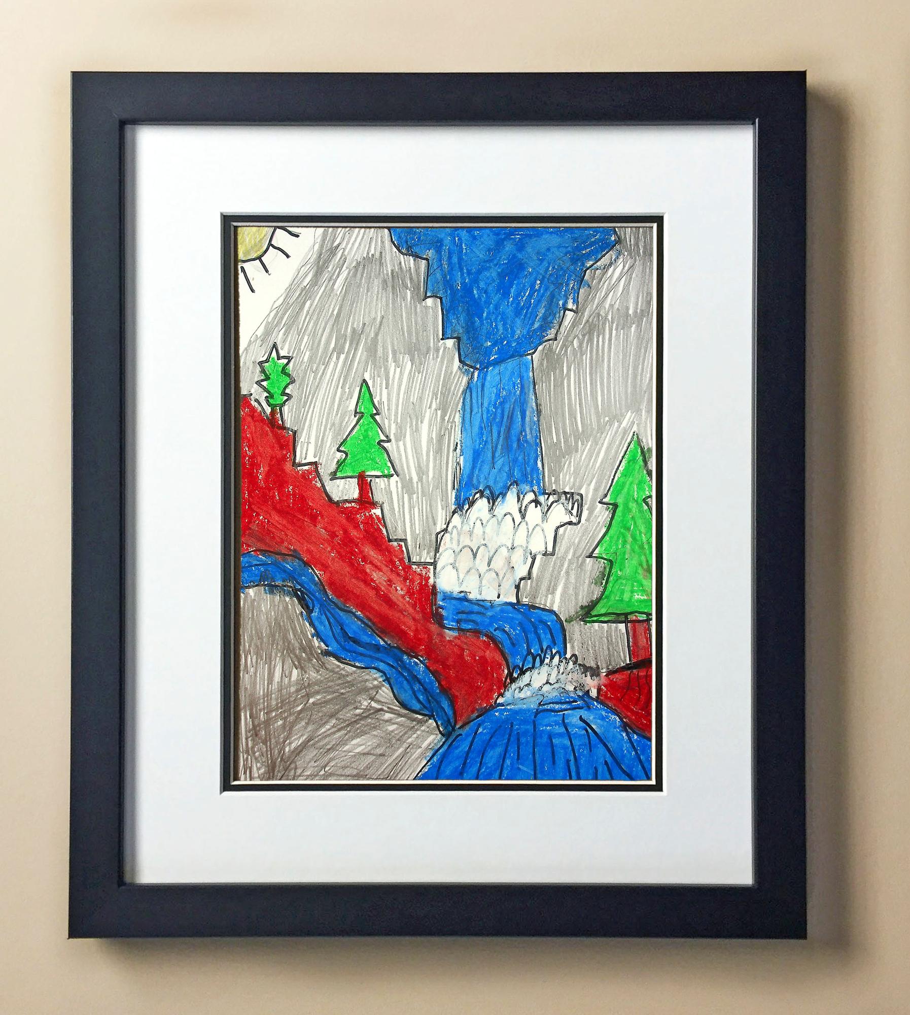 Included with the purchase is the Students Artwork, Frame, double matboard, shatter proof plexiglass, and a ready to hang backerboard with turnbuttons