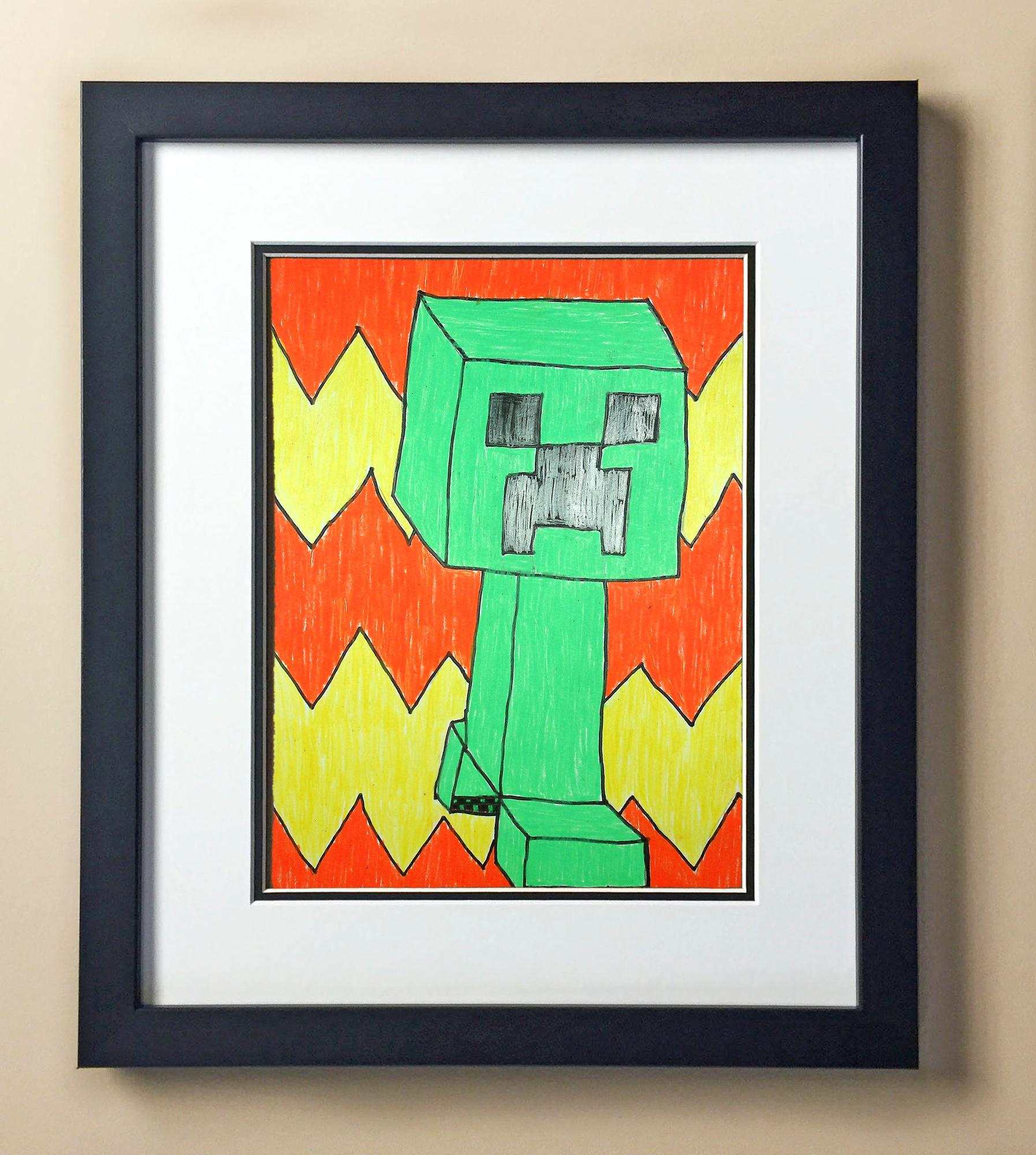 Included with the purchase is the Students Artwork, Frame, double matboard, shatter proof plexiglass, and a ready to hang backerboard with turnbuttons