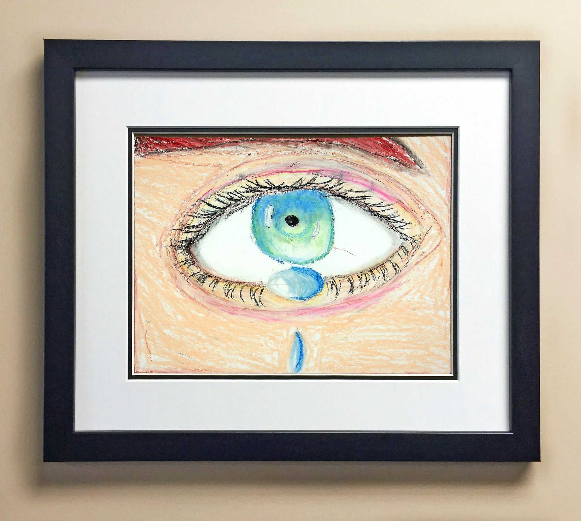 Included with the purchase is the Students Artwork, Frame, double matboard, shatter proof plexiglass, and a ready to hang backerboard with turnbuttons