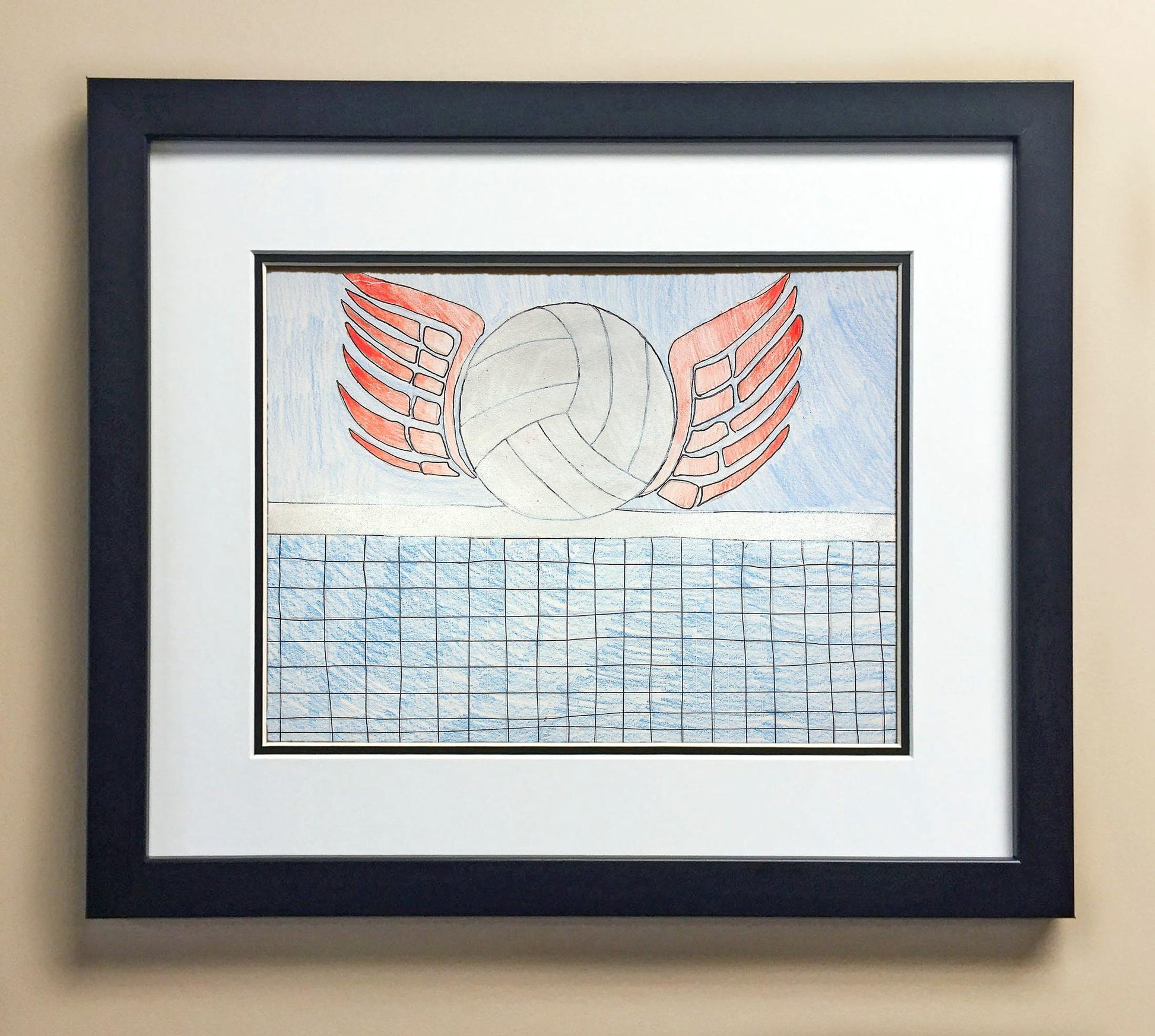 Included with the purchase is the Students Artwork, Frame, double matboard, shatter proof plexiglass, and a ready to hang backerboard with turnbuttons