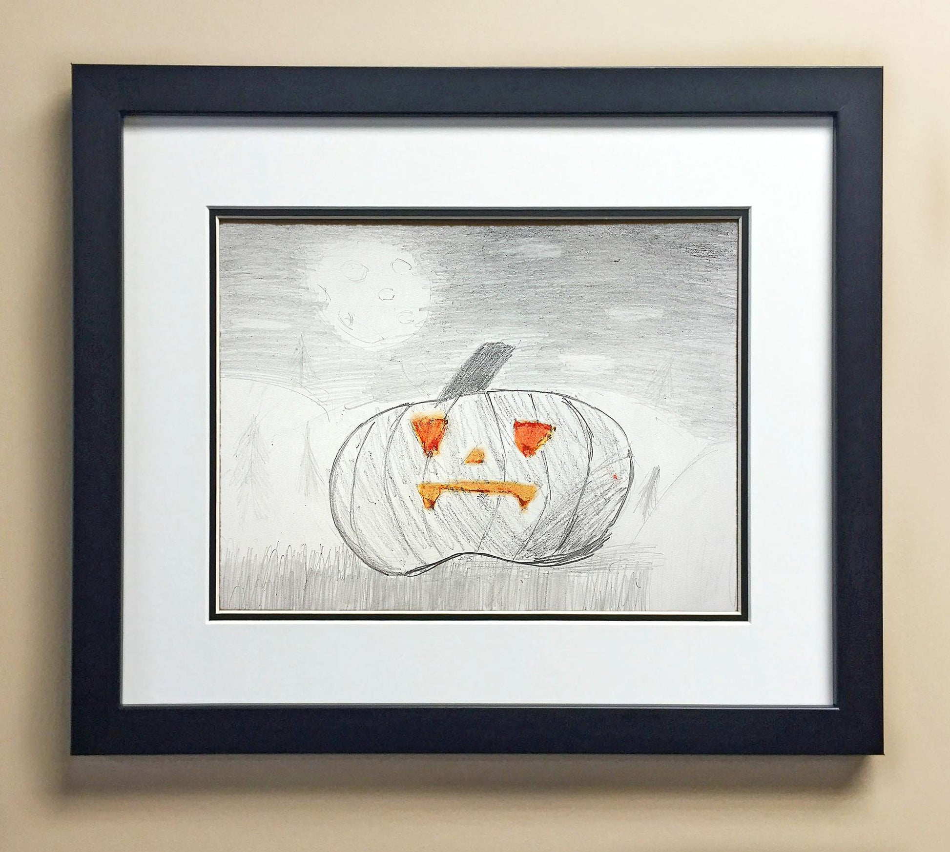 Included with the purchase is the Students Artwork, Frame, double matboard, shatter proof plexiglass, and a ready to hang backerboard with turnbuttons