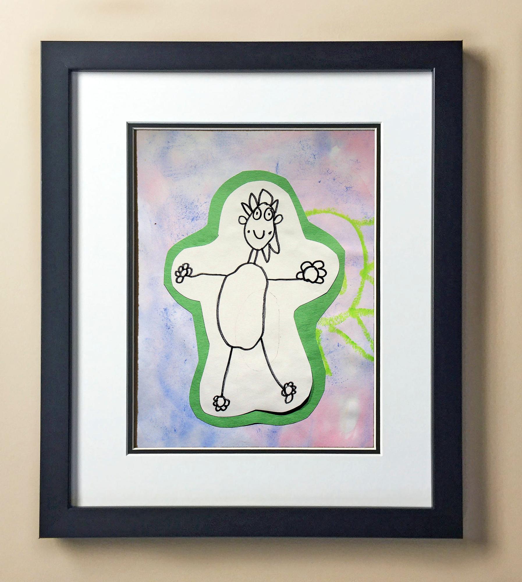 Included with the purchase is the Students Artwork, Frame, double matboard, shatter proof plexiglass, and a ready to hang backerboard with turnbuttons