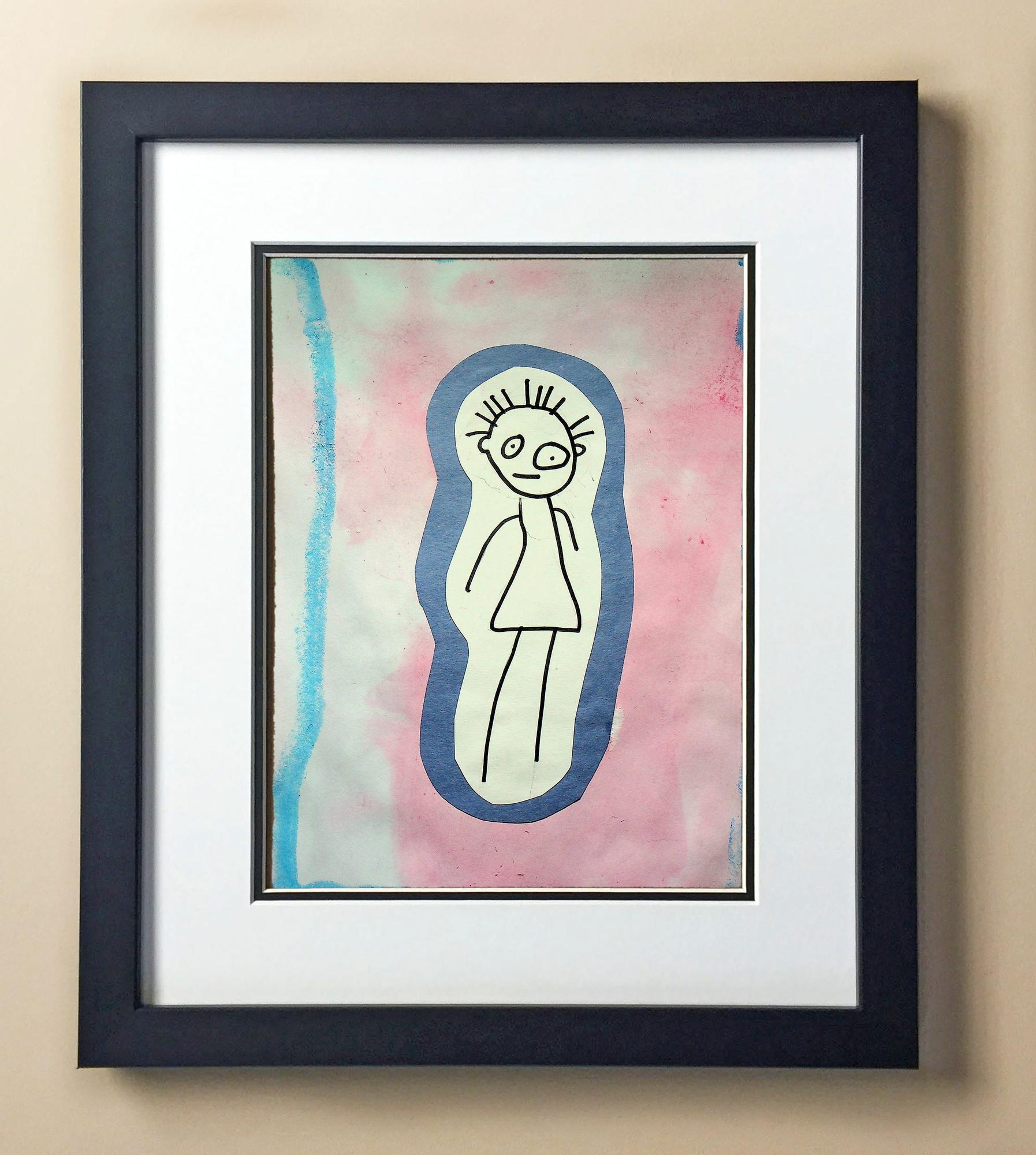 Included with the purchase is the Students Artwork, Frame, double matboard, shatter proof plexiglass, and a ready to hang backerboard with turnbuttons