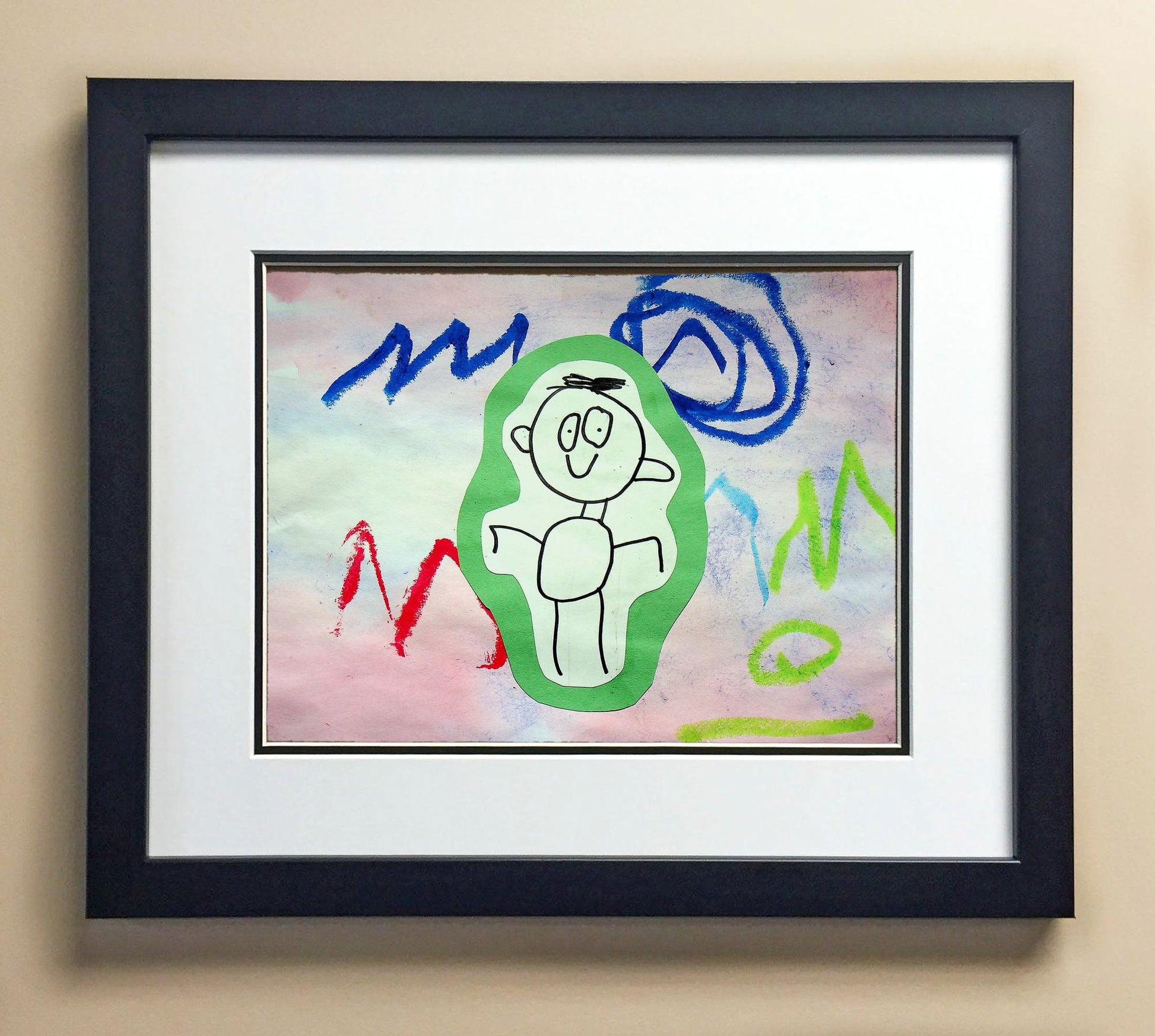 Included with the purchase is the Students Artwork, Frame, double matboard, shatter proof plexiglass, and a ready to hang backerboard with turnbuttons