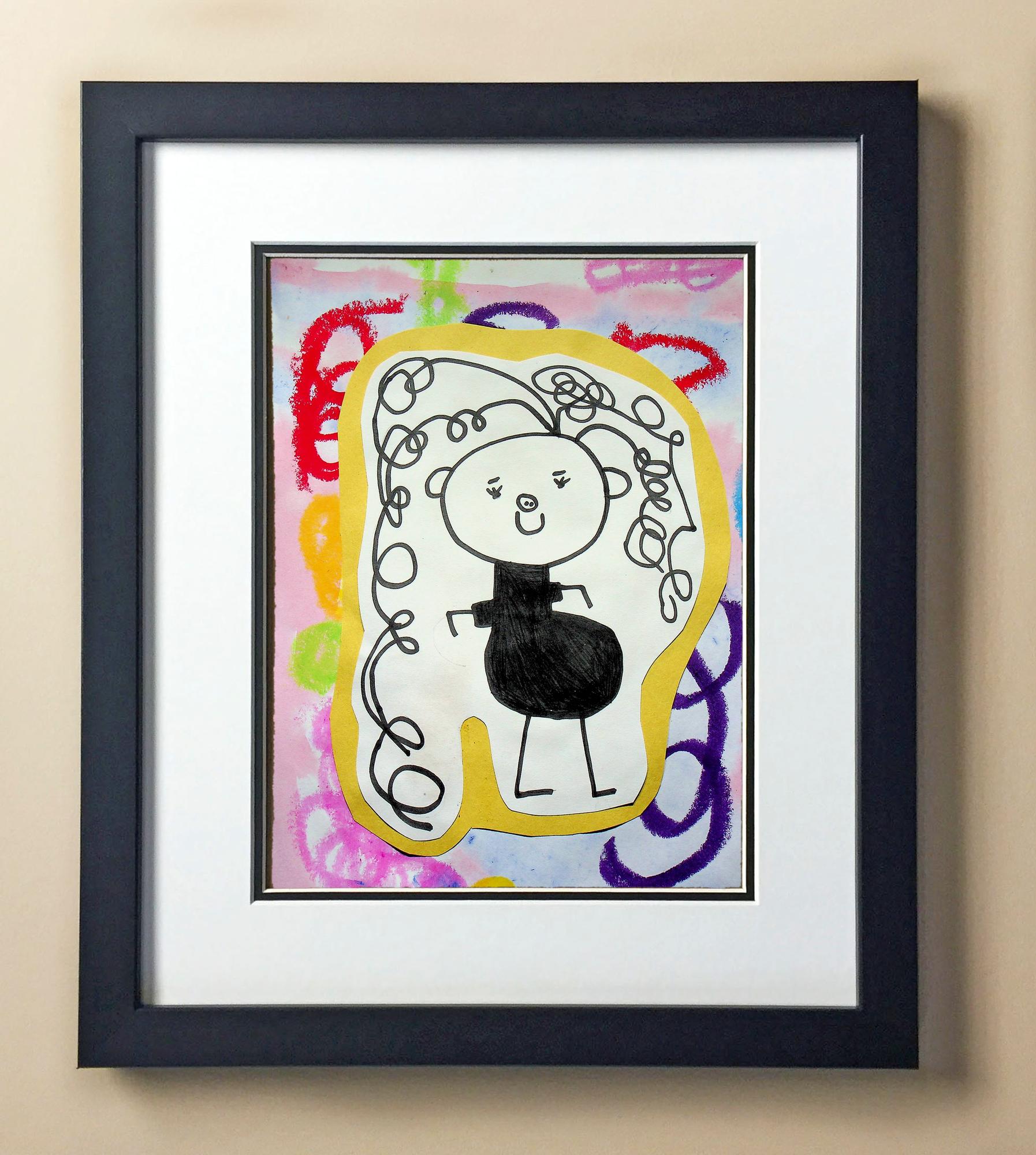 Included with the purchase is the Students Artwork, Frame, double matboard, shatter proof plexiglass, and a ready to hang backerboard with turnbuttons