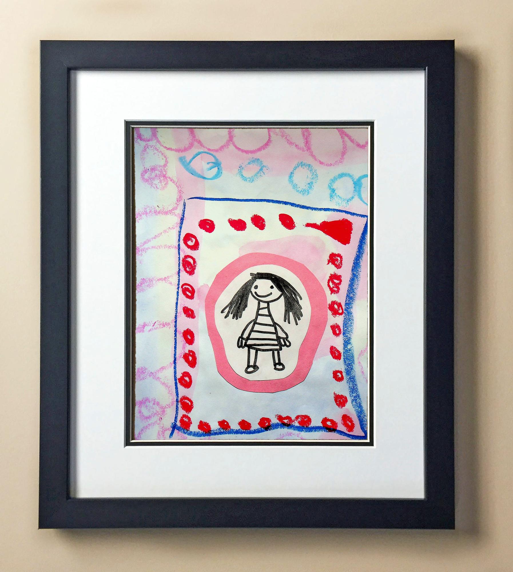 Included with the purchase is the Students Artwork, Frame, double matboard, shatter proof plexiglass, and a ready to hang backerboard with turnbuttons