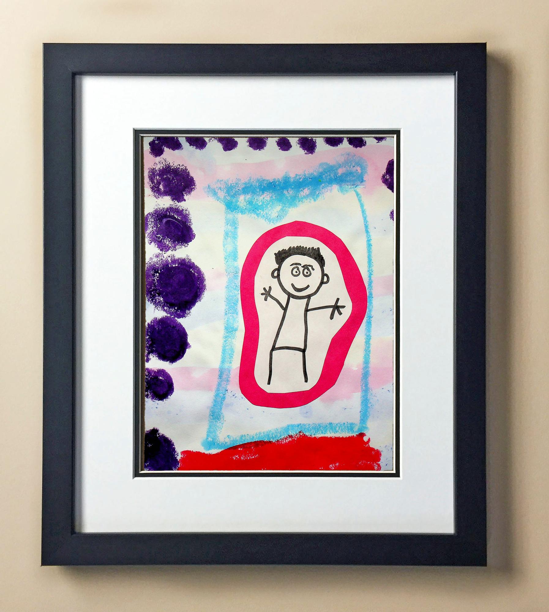 Included with the purchase is the Students Artwork, Frame, double matboard, shatter proof plexiglass, and a ready to hang backerboard with turnbuttons