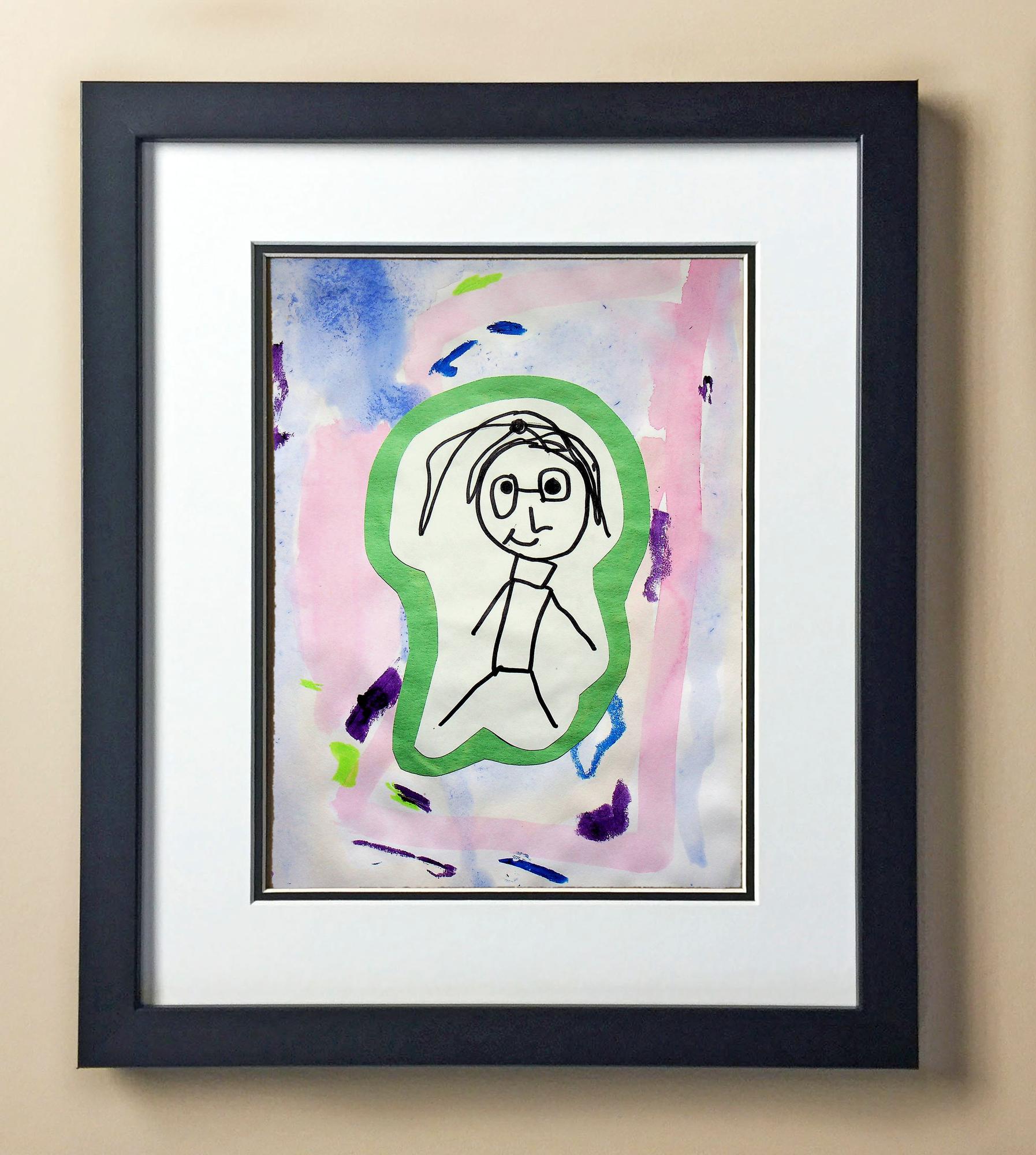 Included with the purchase is the Students Artwork, Frame, double matboard, shatter proof plexiglass, and a ready to hang backerboard with turnbuttons