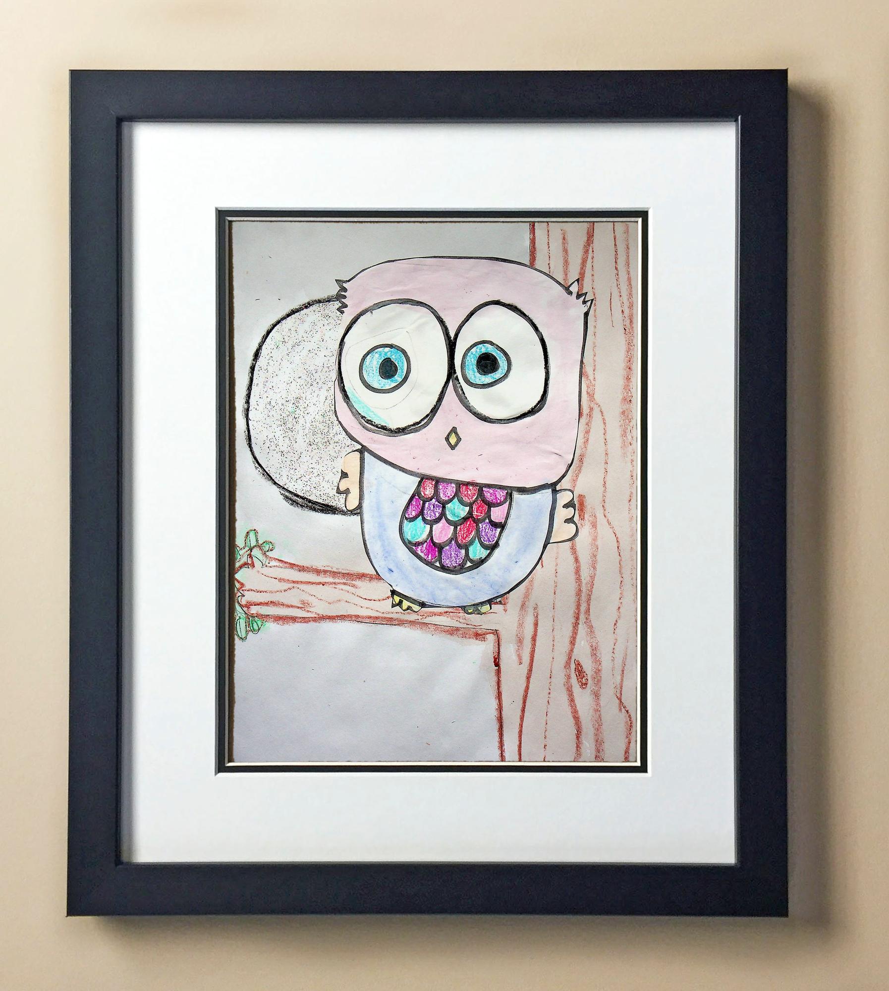 Included with the purchase is the Students Artwork, Frame, double matboard, shatter proof plexiglass, and a ready to hang backerboard with turnbuttons