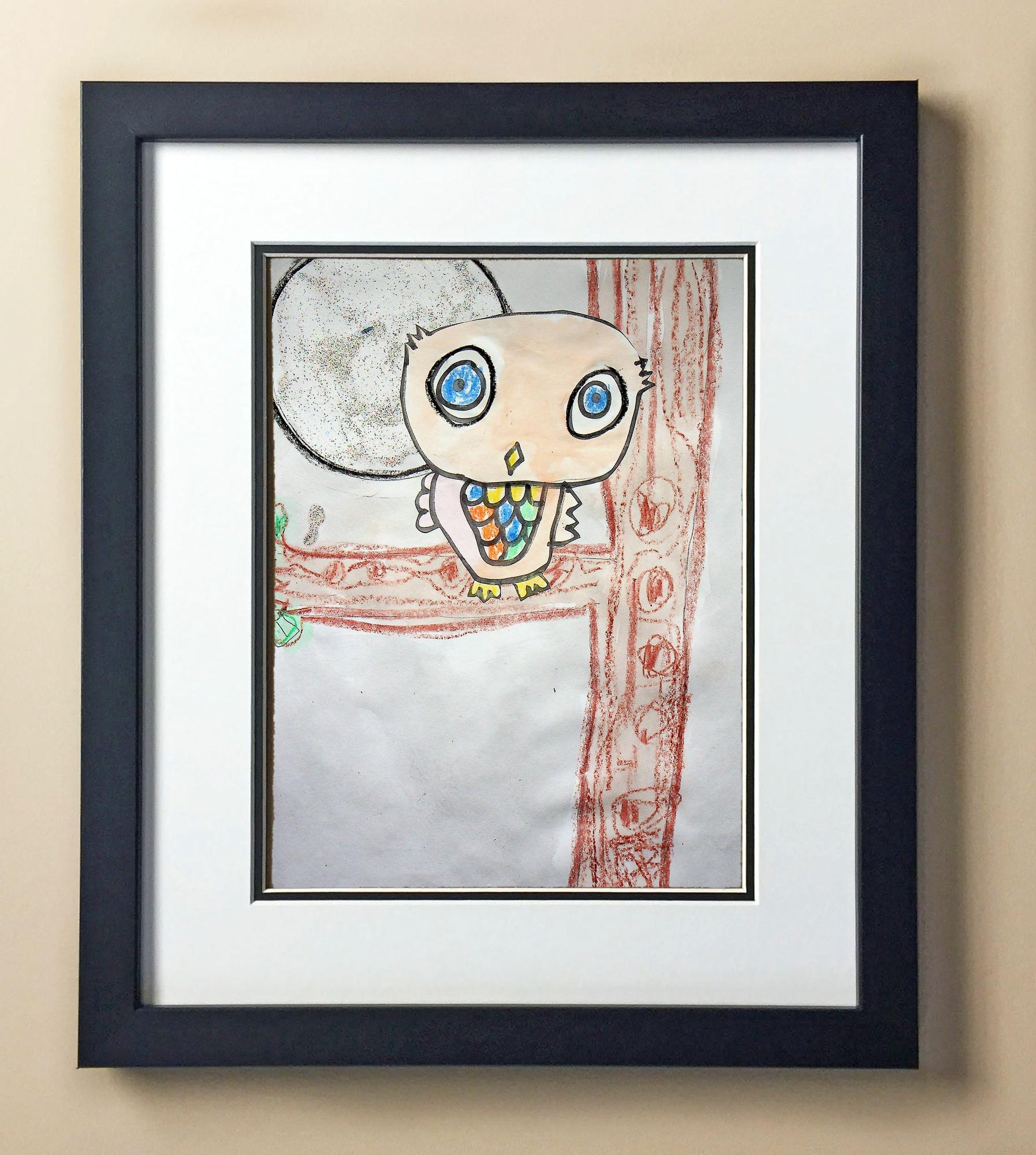 Included with the purchase is the Students Artwork, Frame, double matboard, shatter proof plexiglass, and a ready to hang backerboard with turnbuttons
