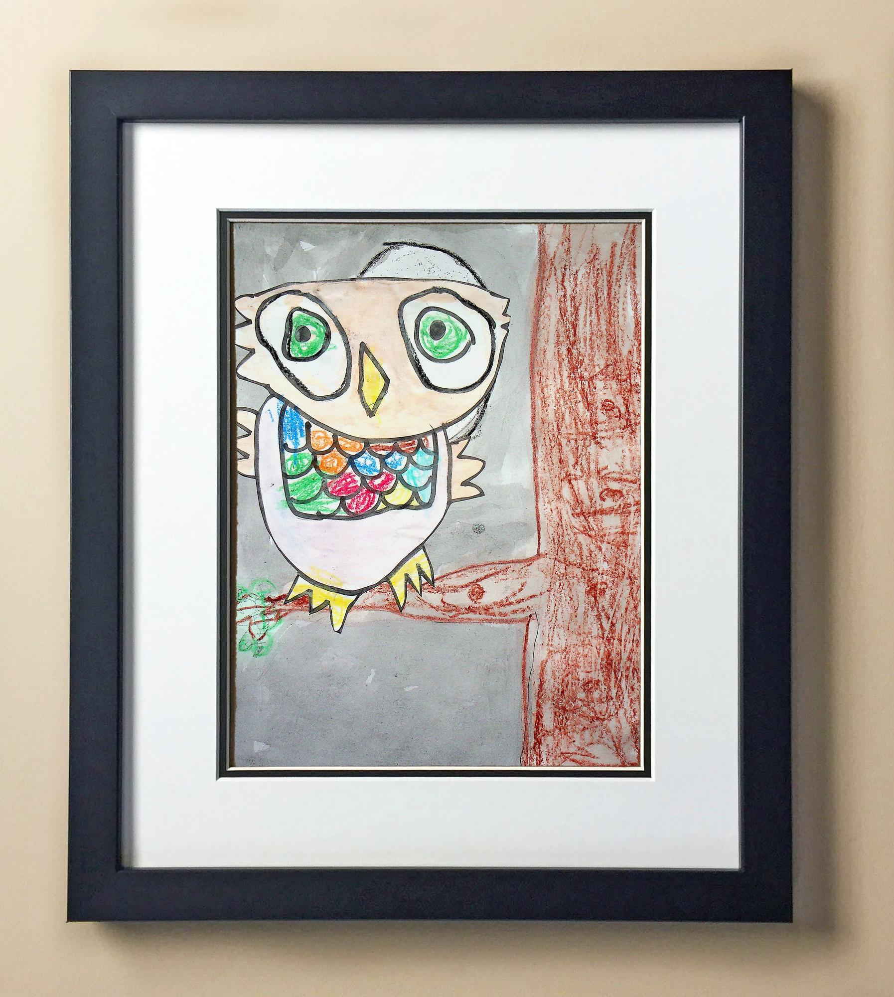 Included with the purchase is the Students Artwork, Frame, double matboard, shatter proof plexiglass, and a ready to hang backerboard with turnbuttons